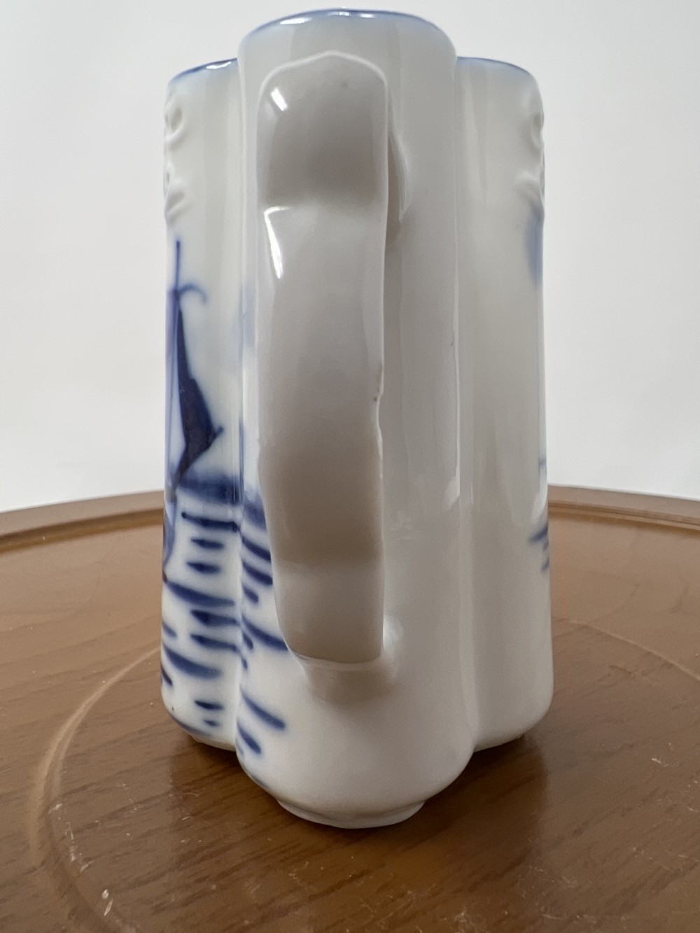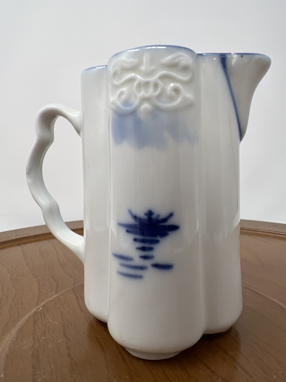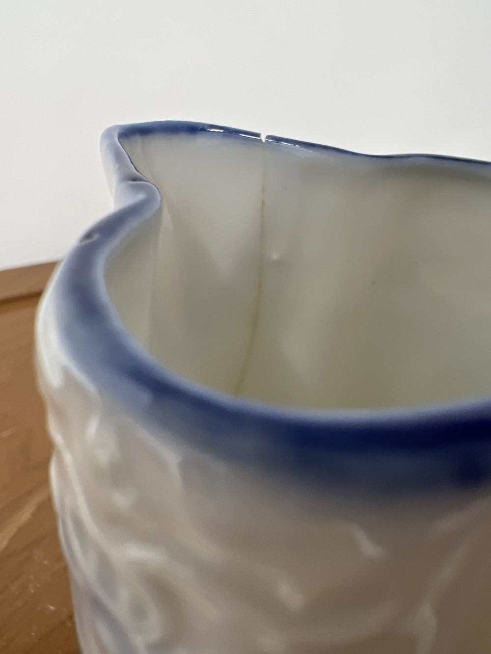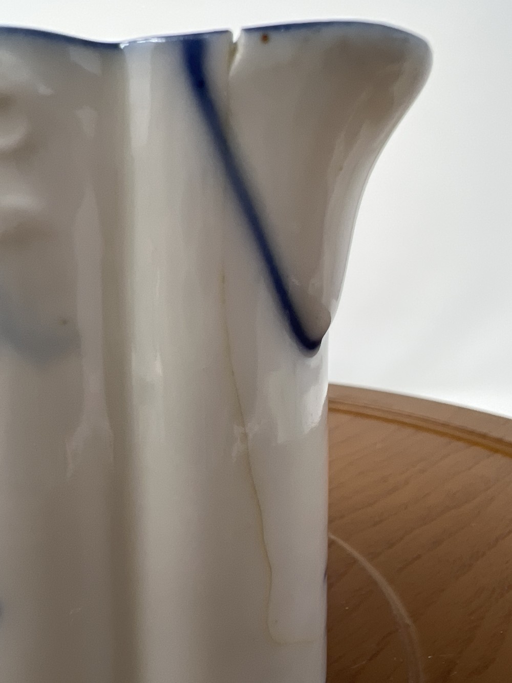 Antique Blue and White Pitcher; AS IS; approx 4.25”; crack as shown in photos