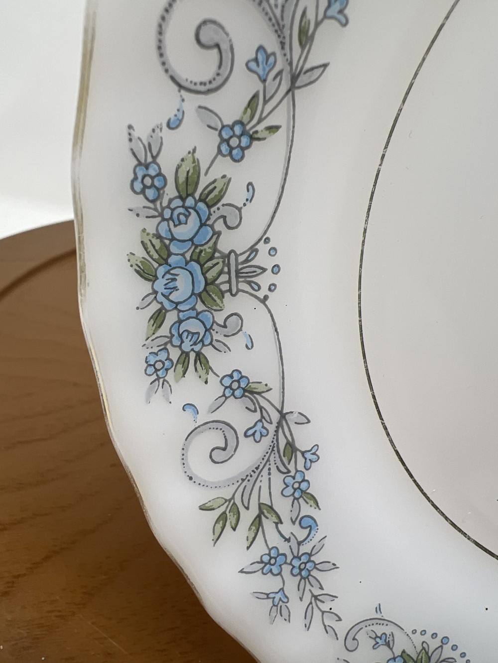 Pair of Milk Glass Dessert Plates; approx 8”; minimalGold paint loss