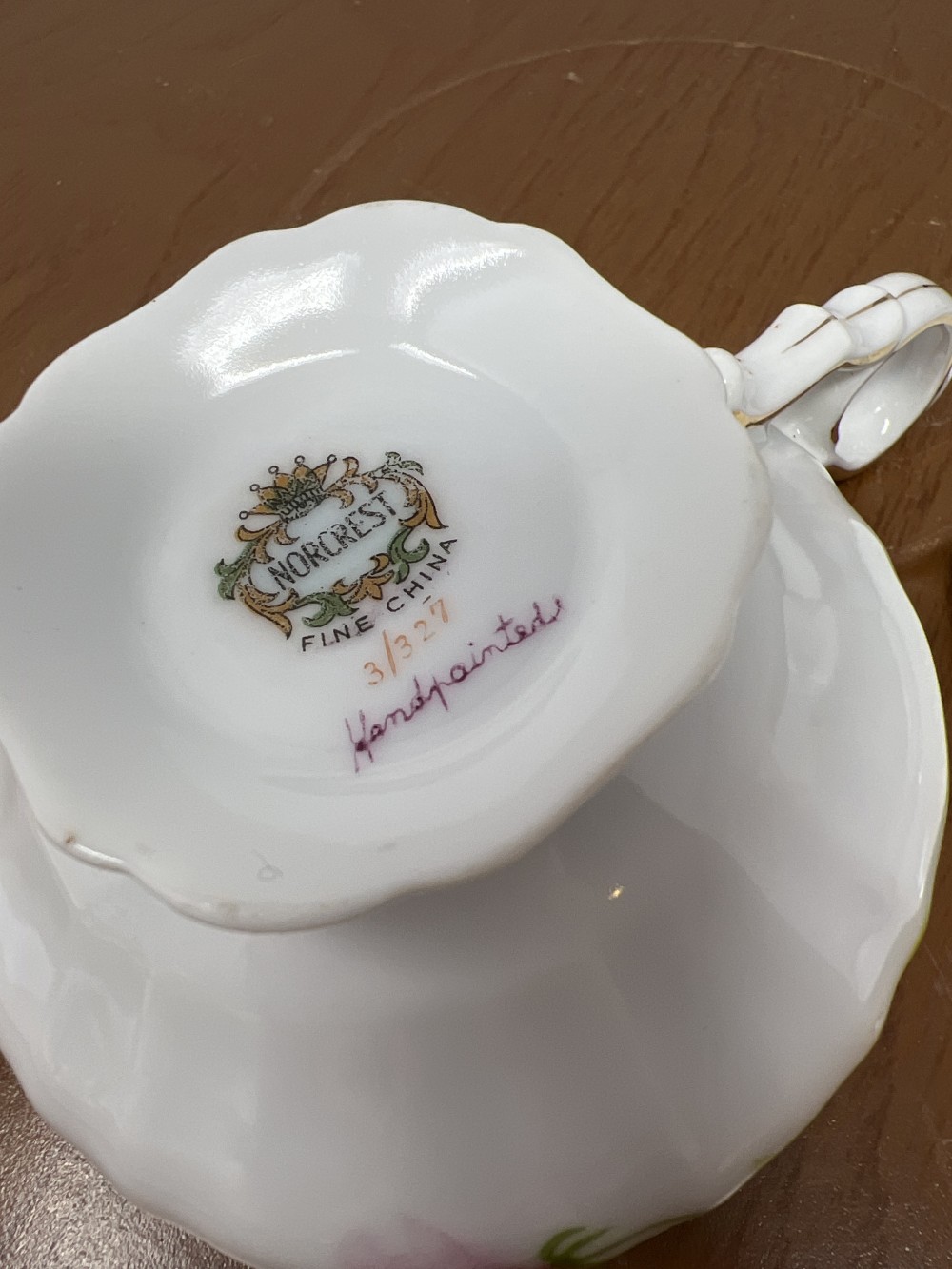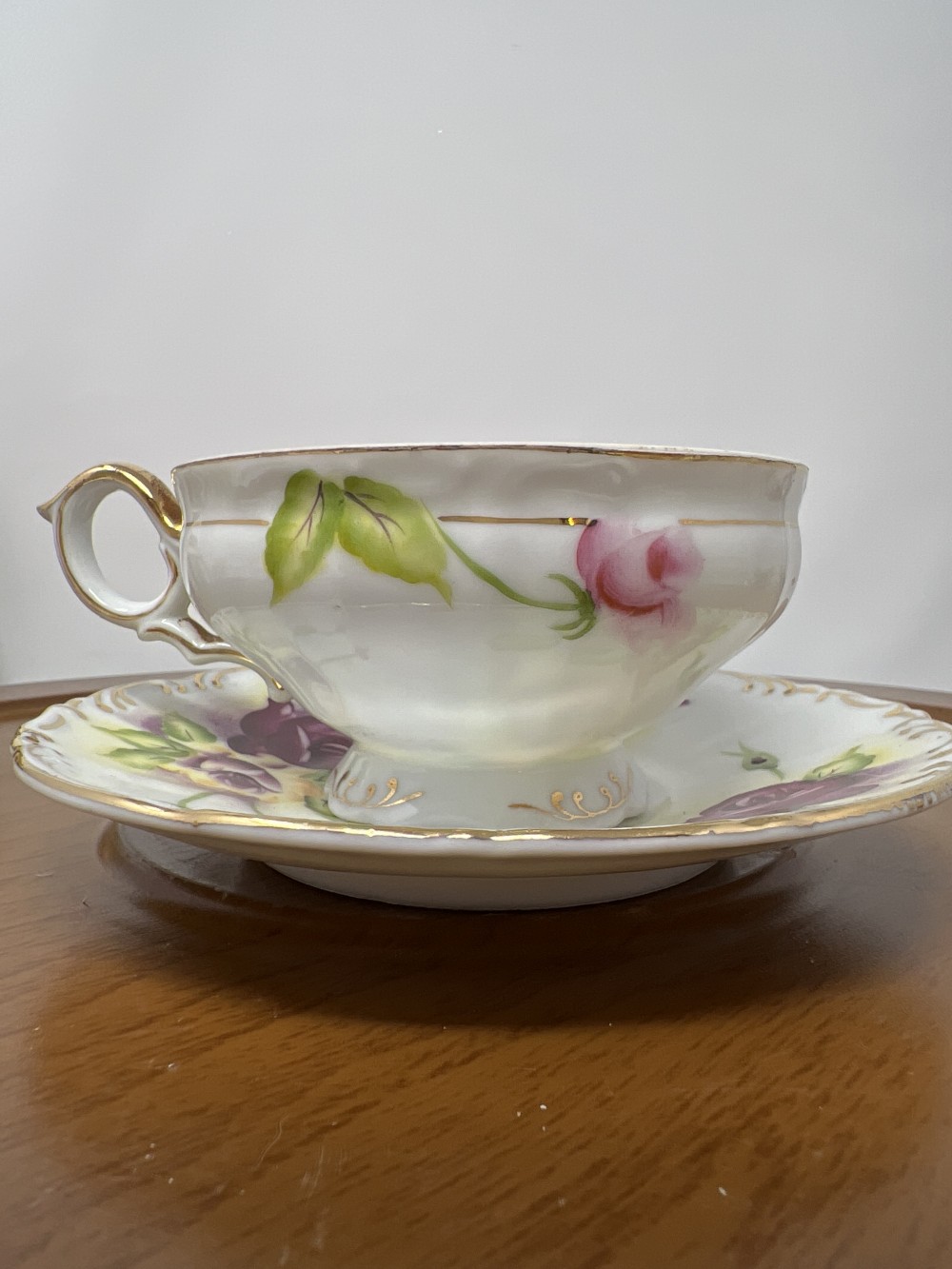 Norcrest Fine China Footed Teacup and Saucer: Hand-Painted Pink Roses, Gold Trim
