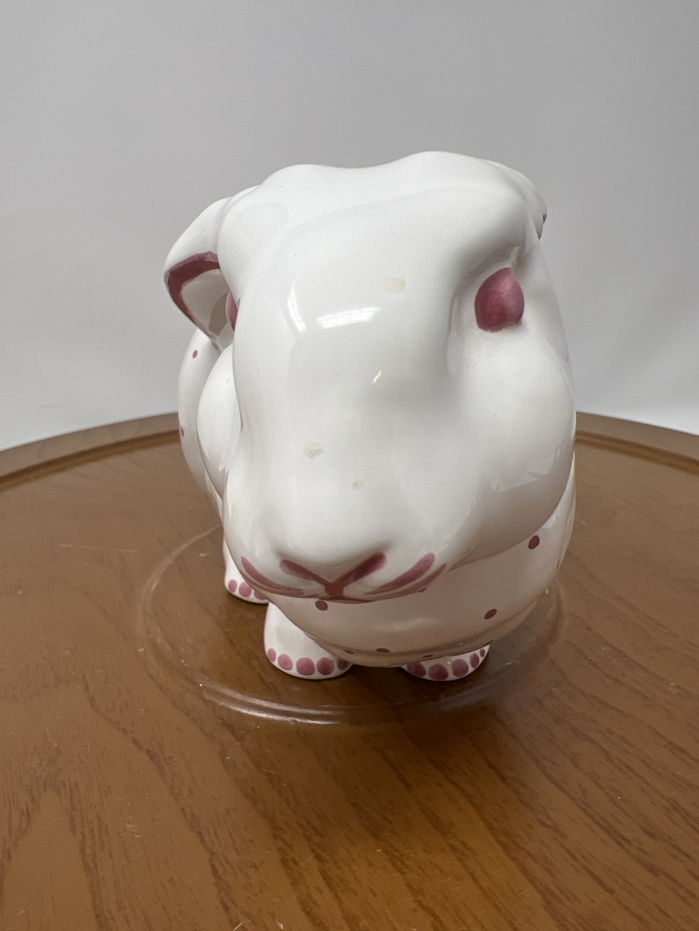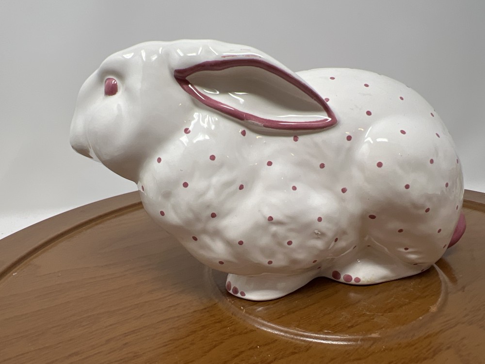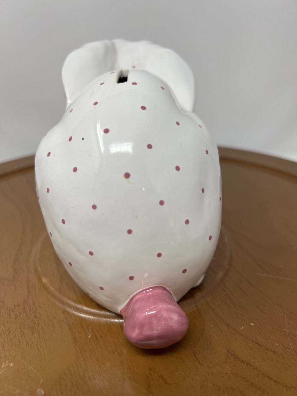Tiffany & Co Pink White Polka Dot Ceramic Bunny Rabbit Bank Hand Painted; no stopper; as shown in photos
