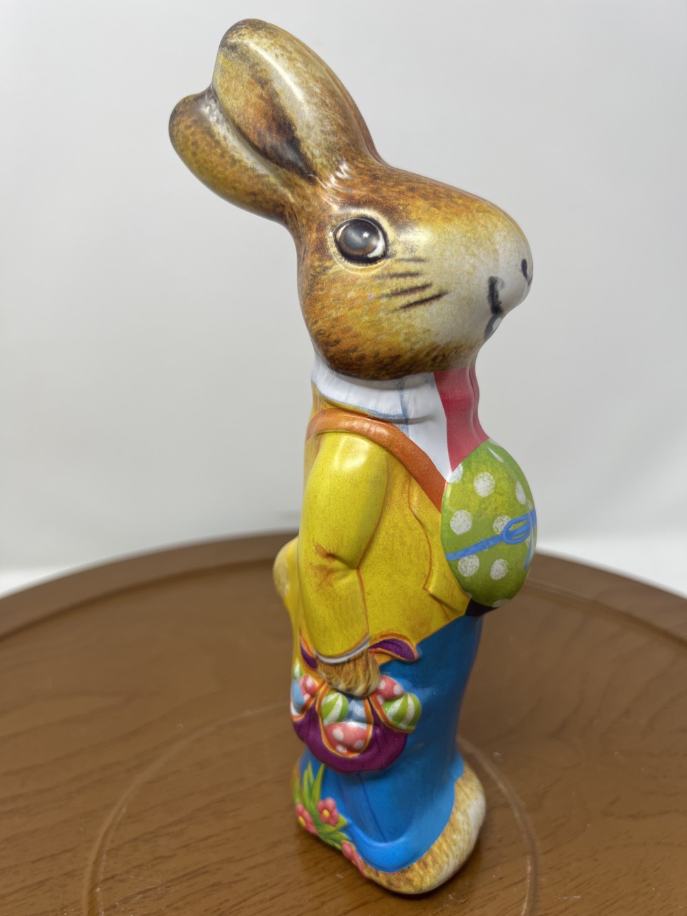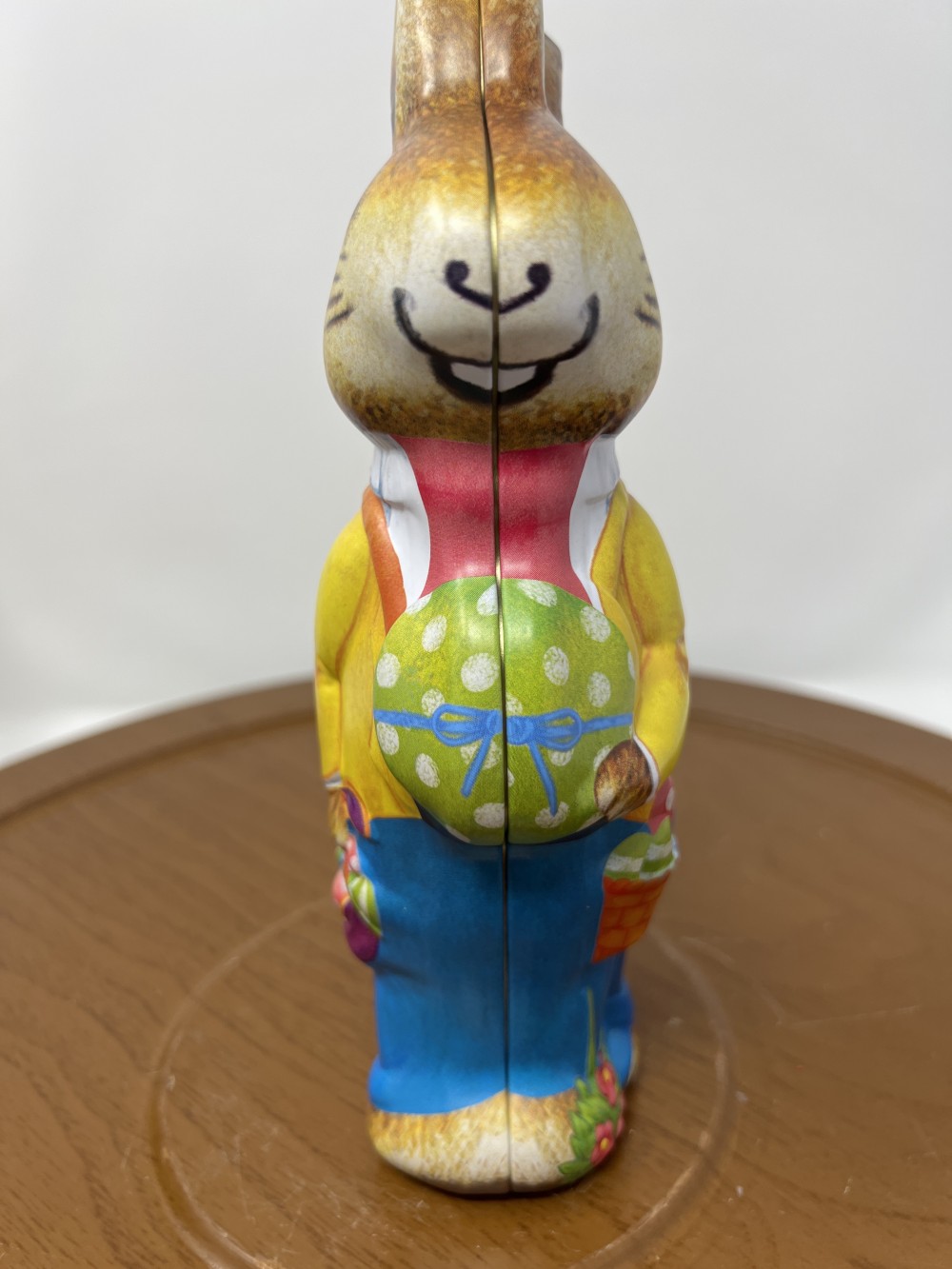 Vintage figural Easter bunny canister with brightly painted finish 2-piece container