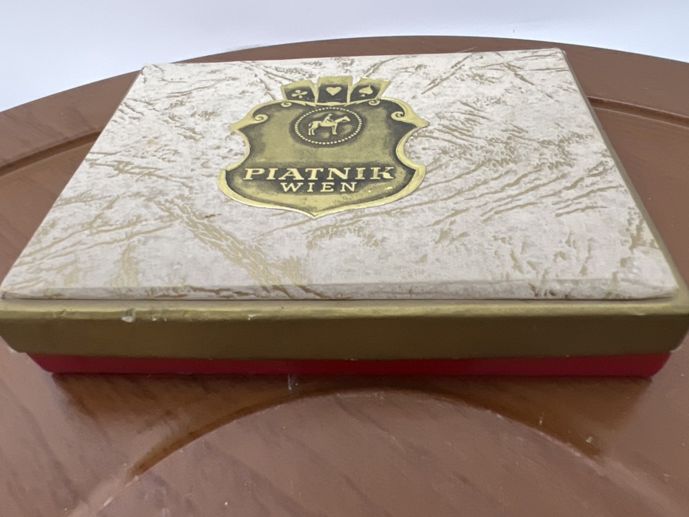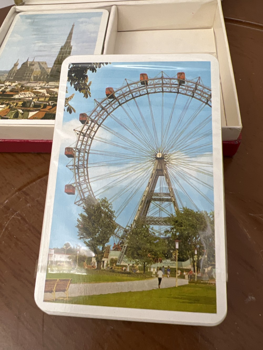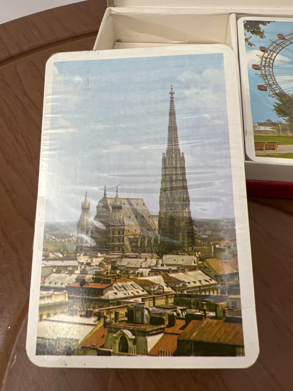 Vintage Austrian playing cards by Ferd. Piatnik & Söhne featuring Vienna landmarks in original box.