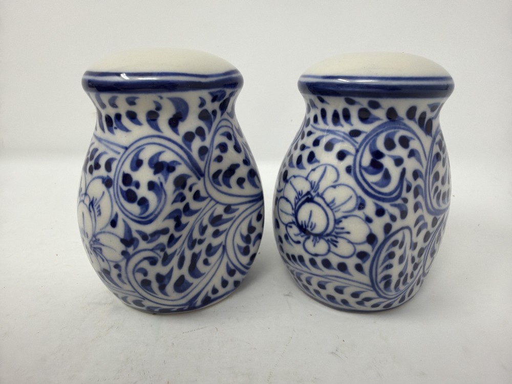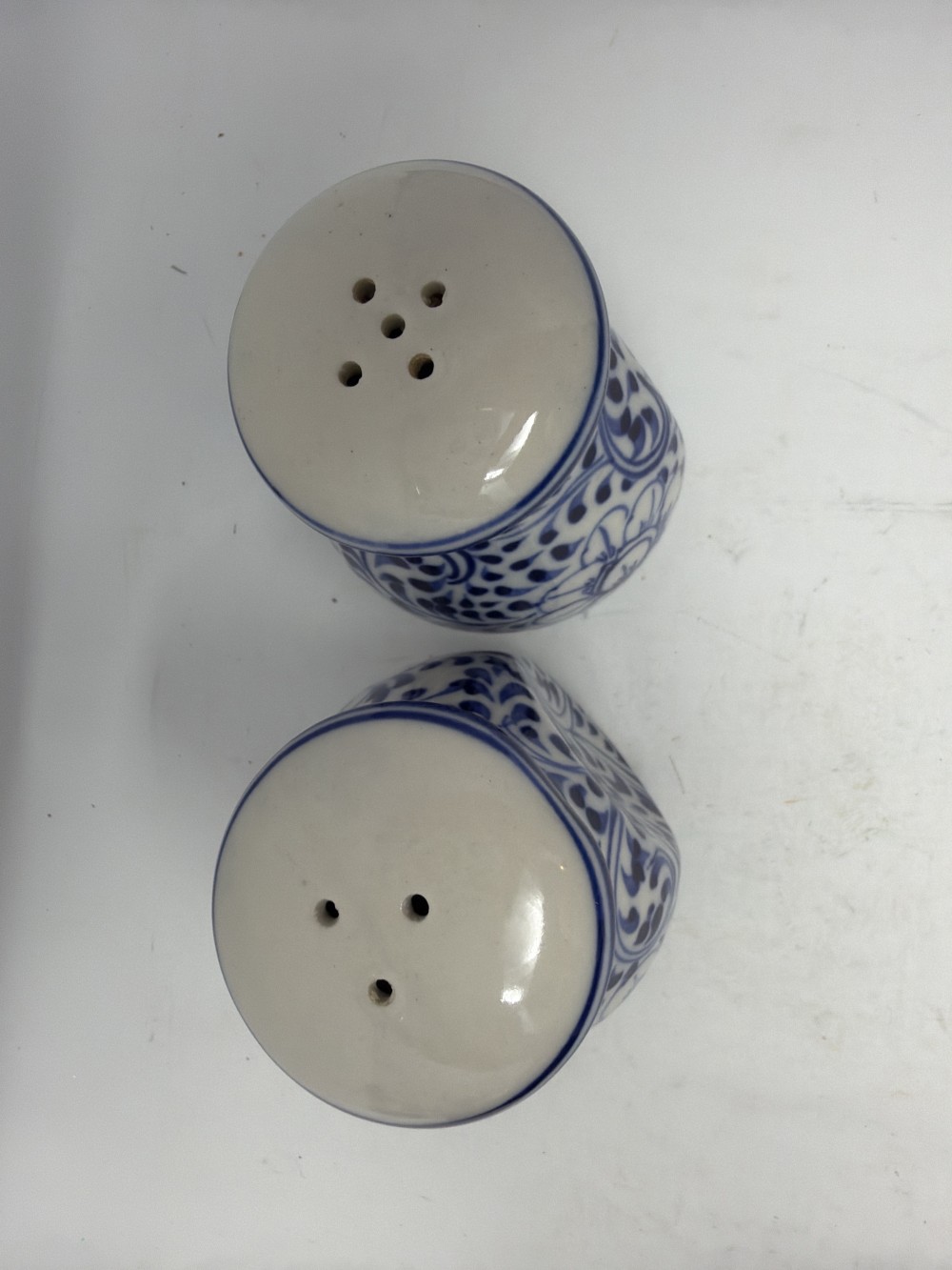 Vintage Blue & White Ceramic Salt & Pepper Shakers