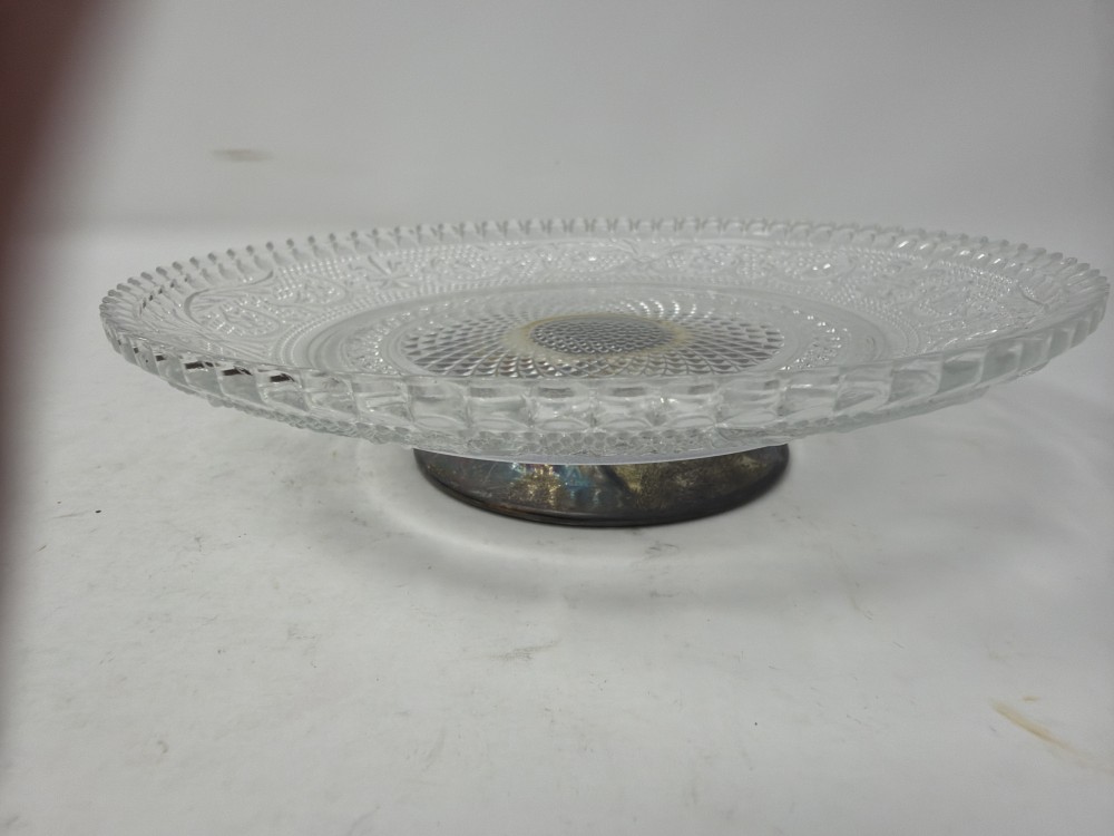 Vtg Pressed Glass Pedestal Server