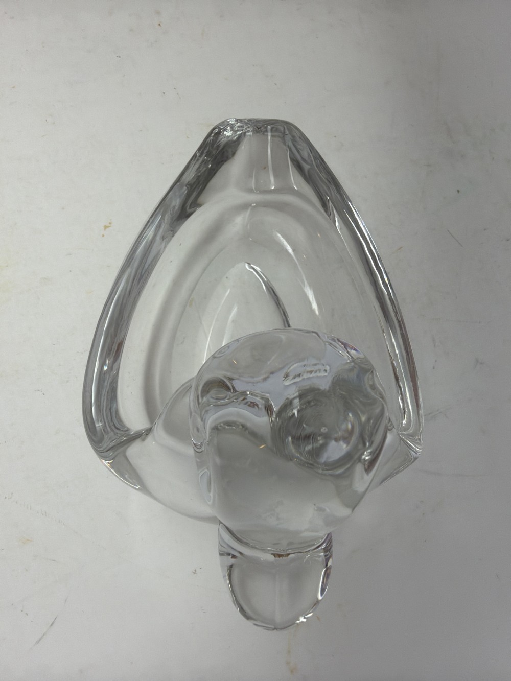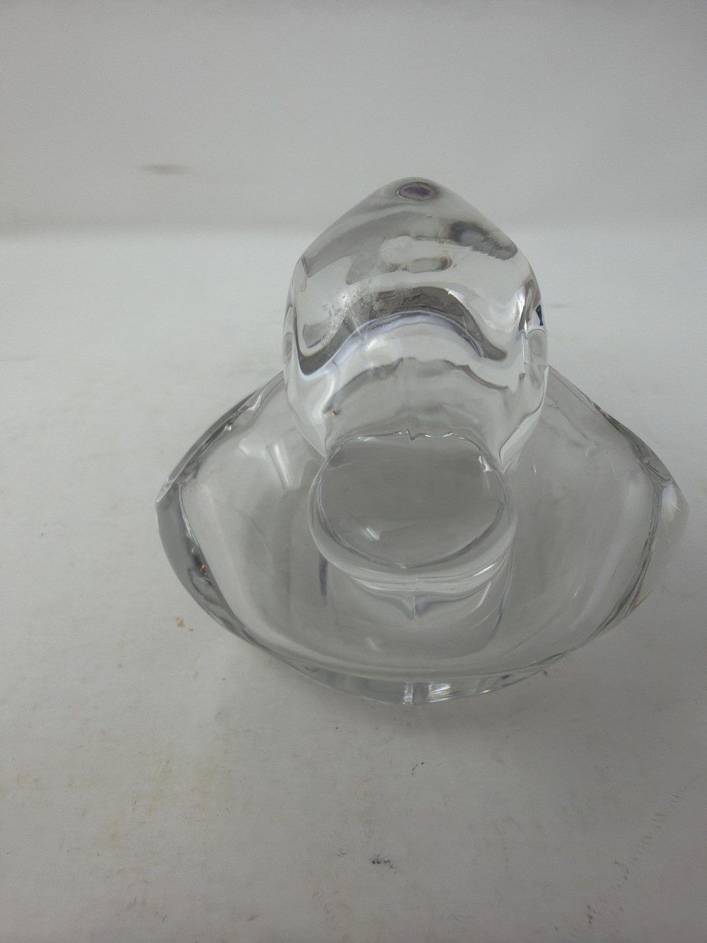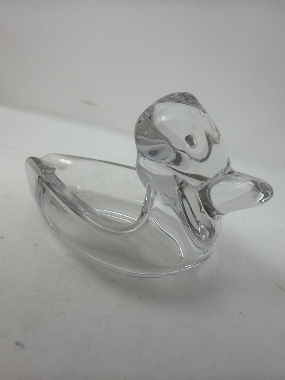 Clear pressed glass duck form ashtray by Duncan Miller. Classic mid-century design. Approx 5”