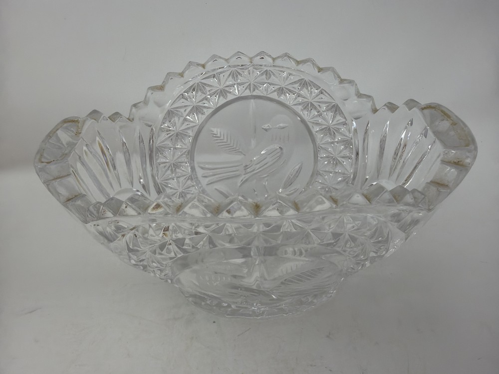 Crystal Oval Etched Bird Bowl