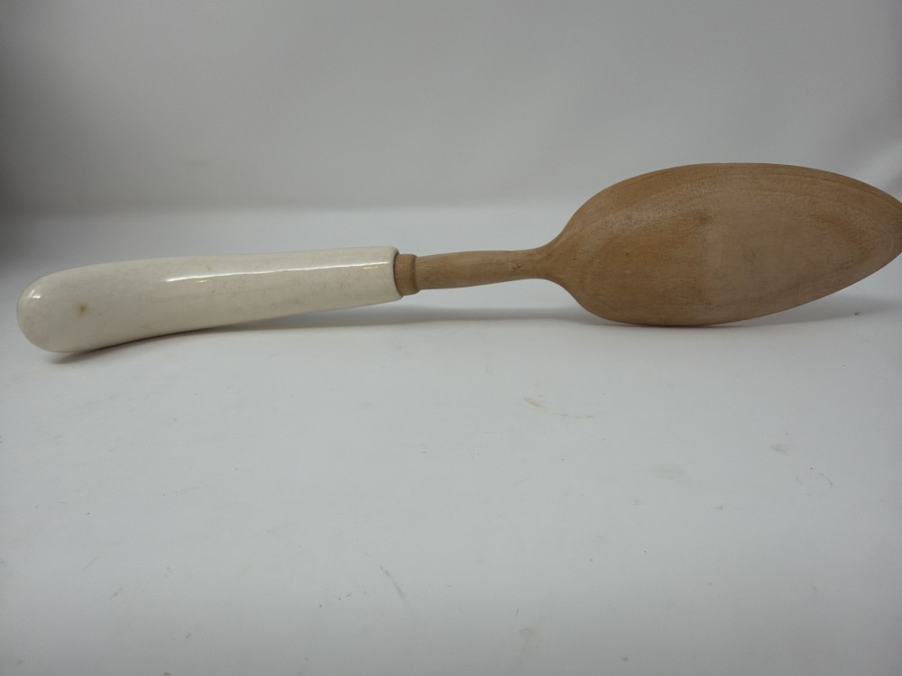 Vintage Wooden Spoon with Blue Floral Ceramic Handle; approx 10”