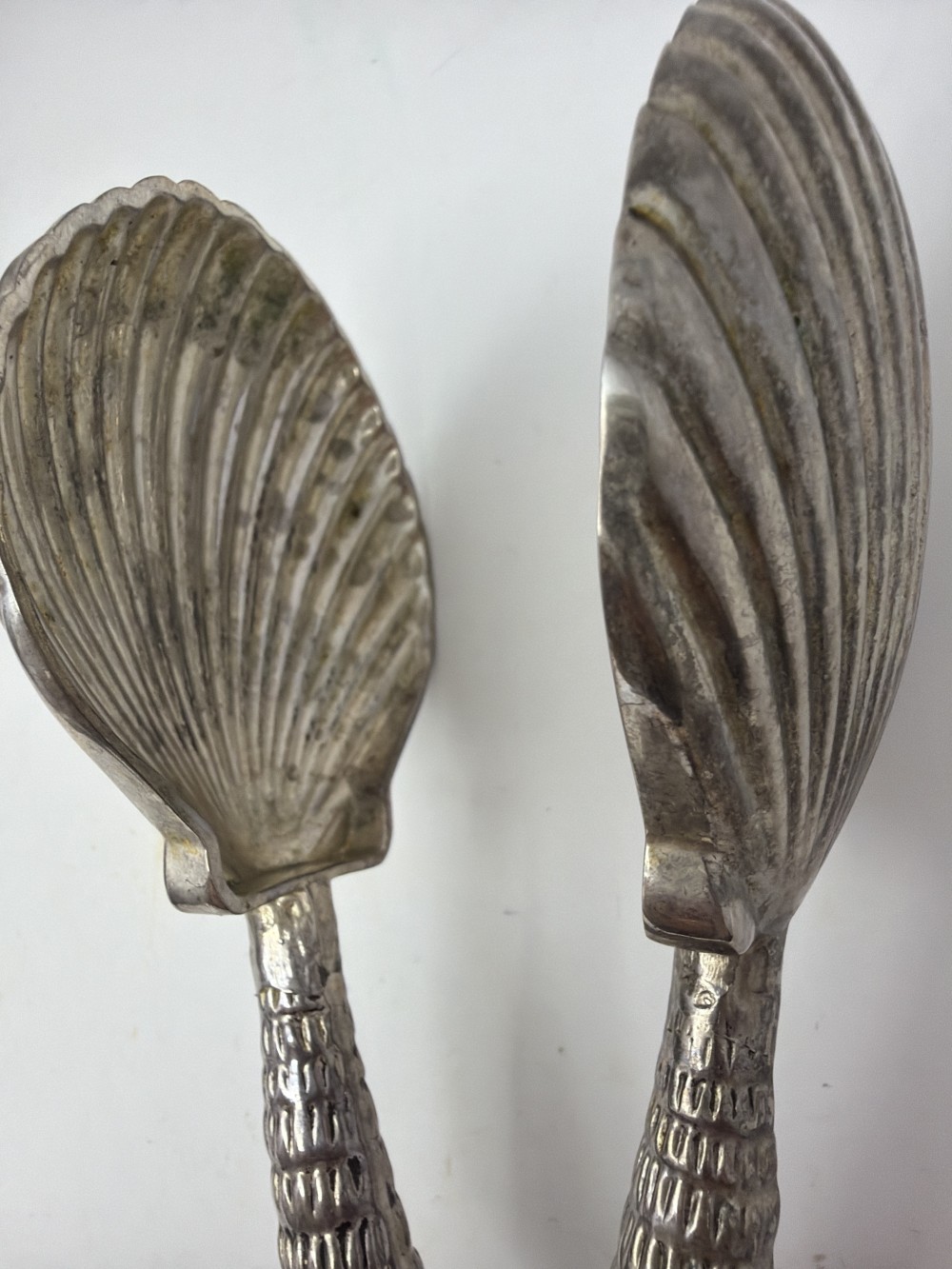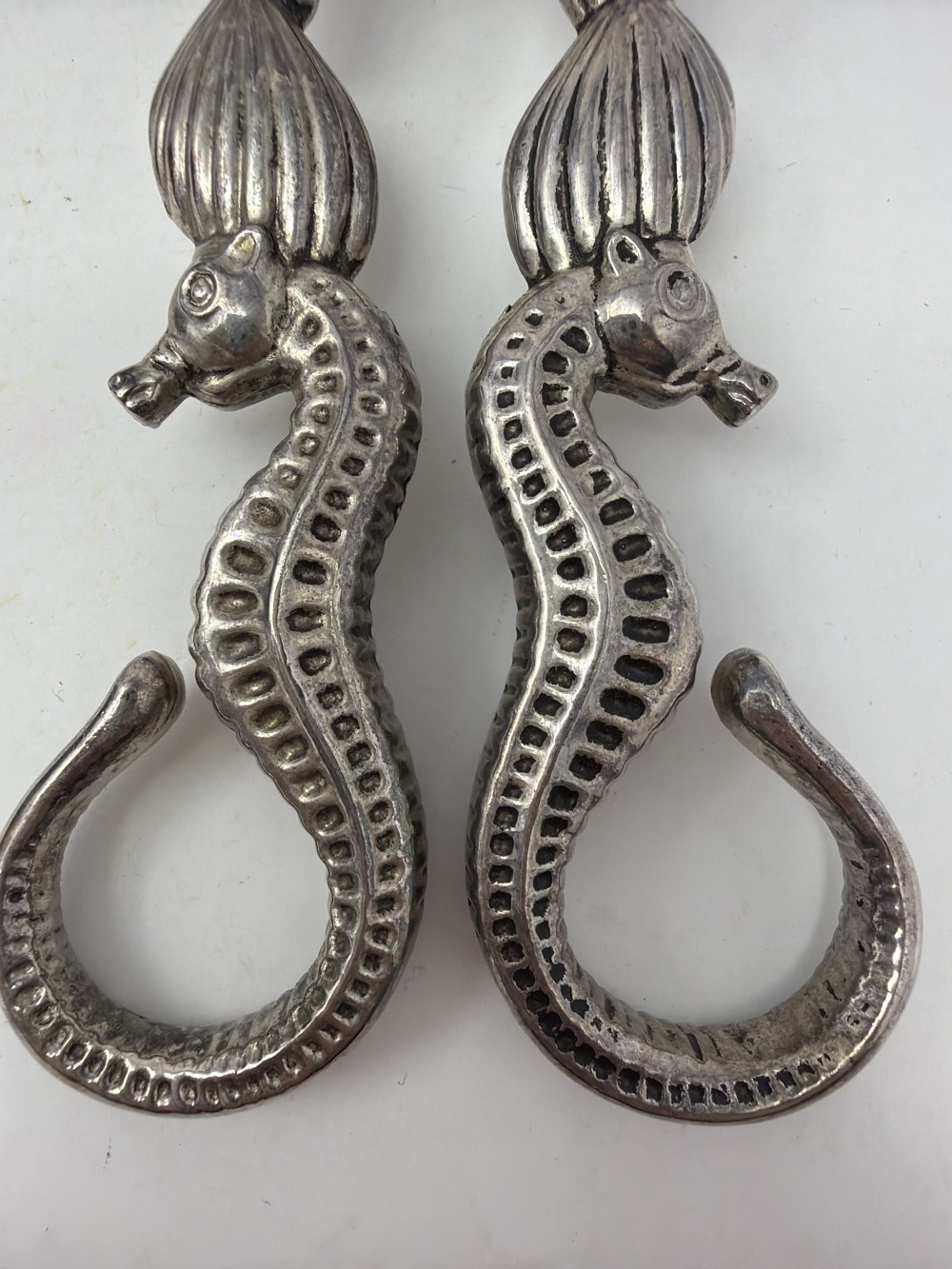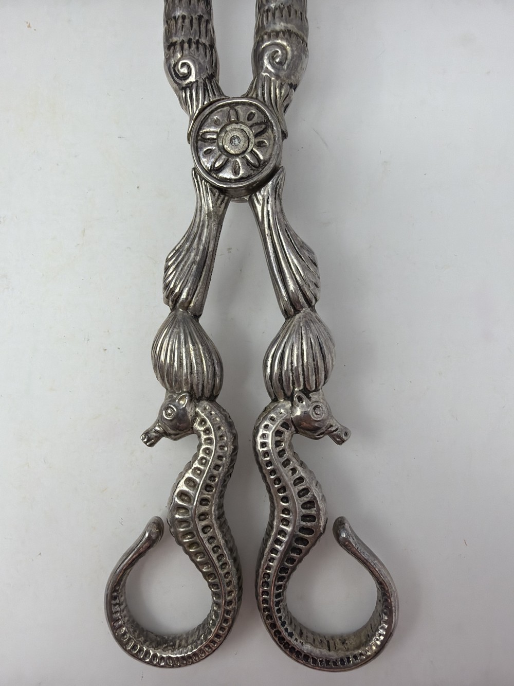1990s Godinger Silver Sea Treasures Salad Tongs Nautical Seahorse Shell Art Tong; approx 11”