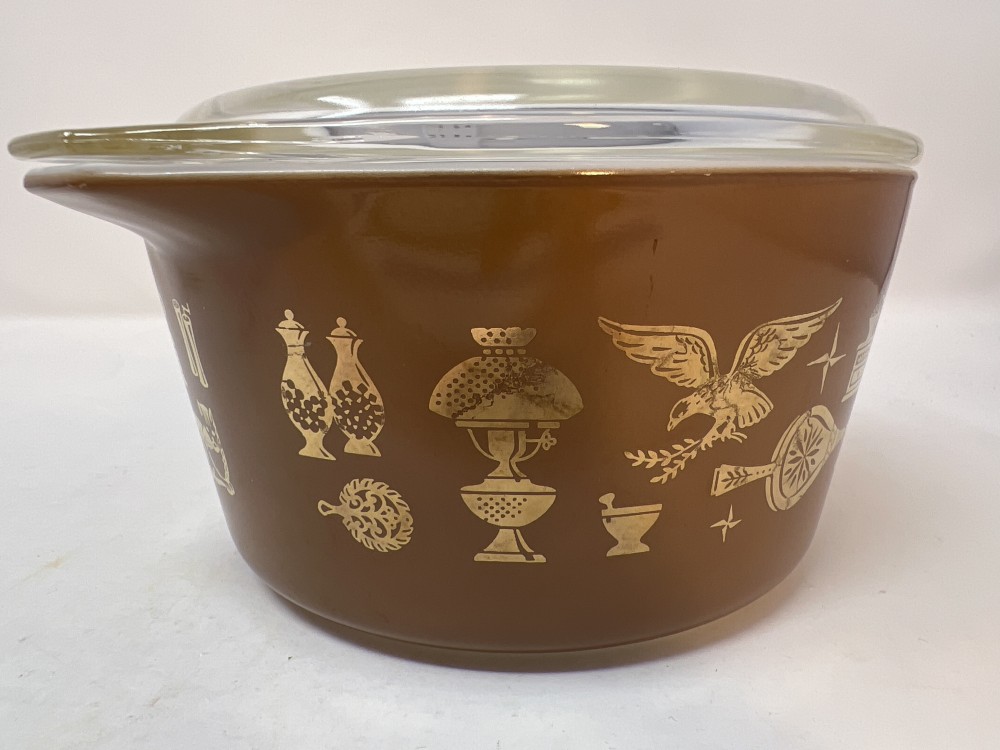 Mid-Century Pyrex "Early American" casserole w/lid;