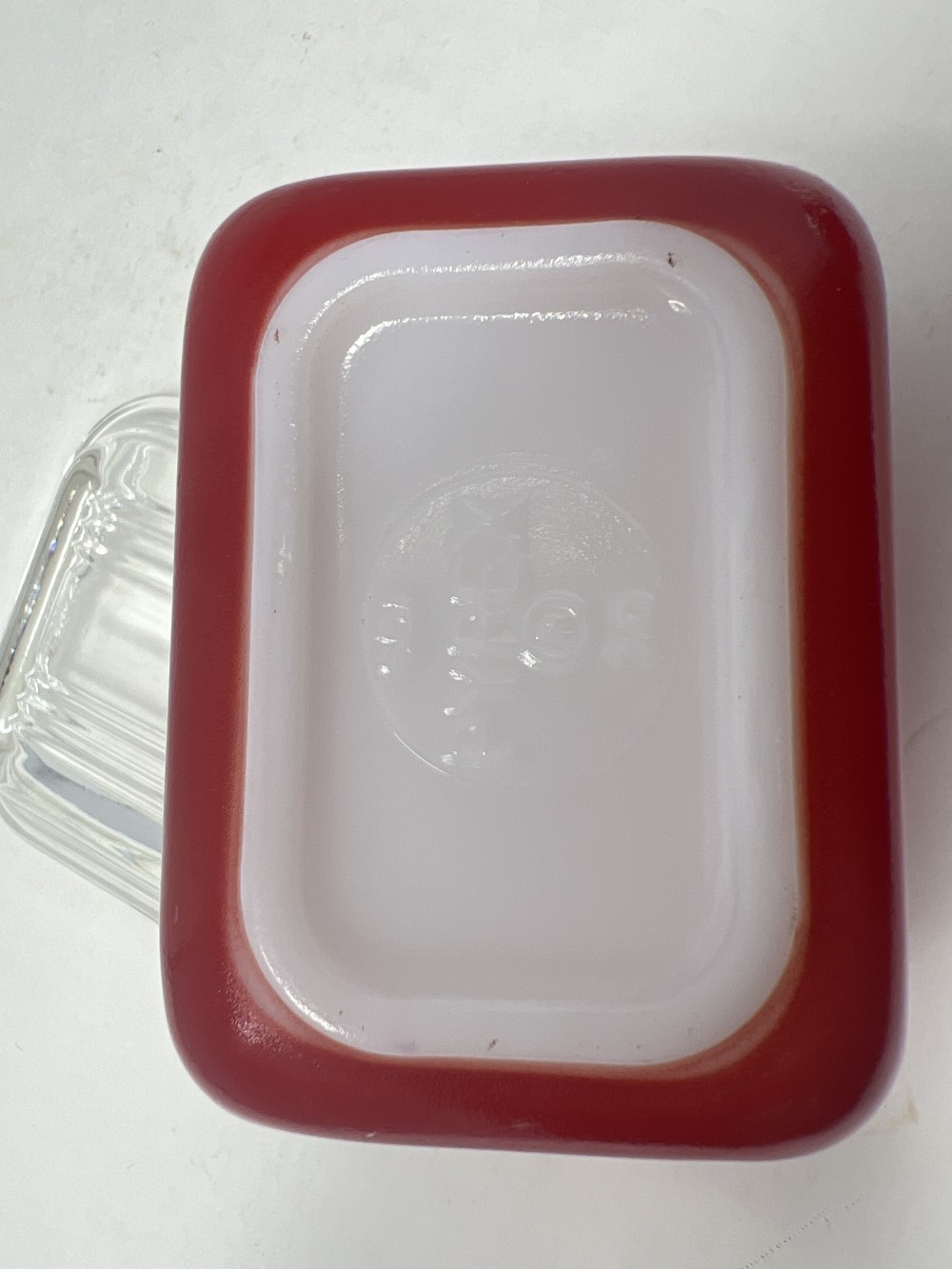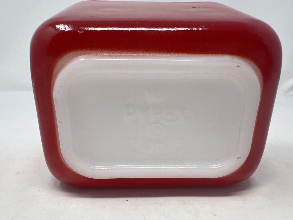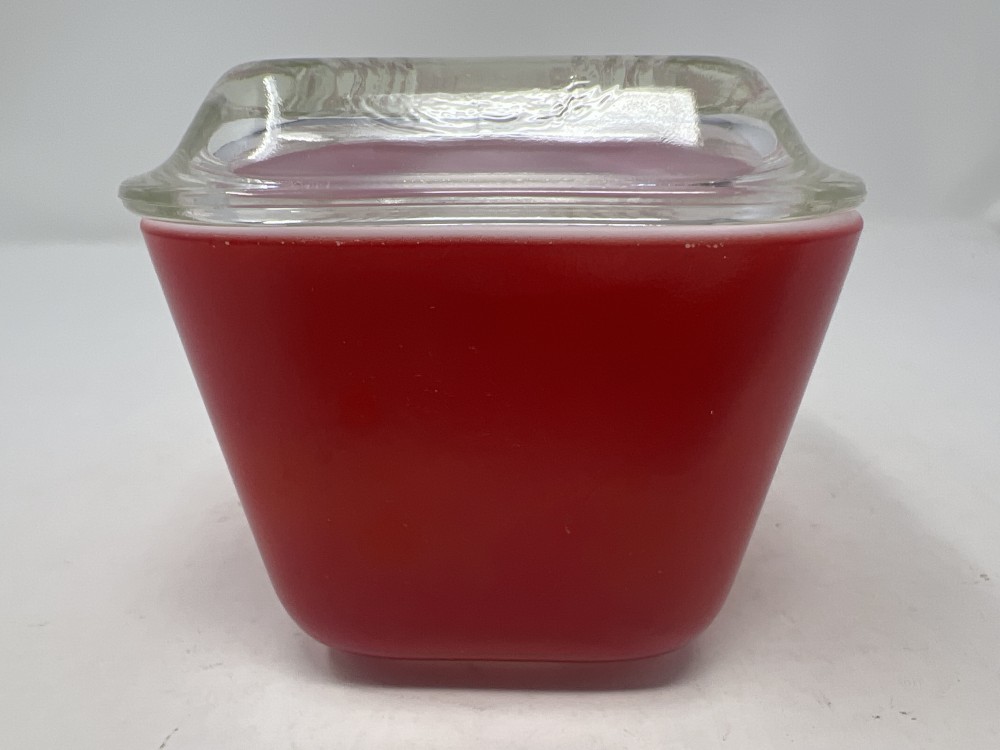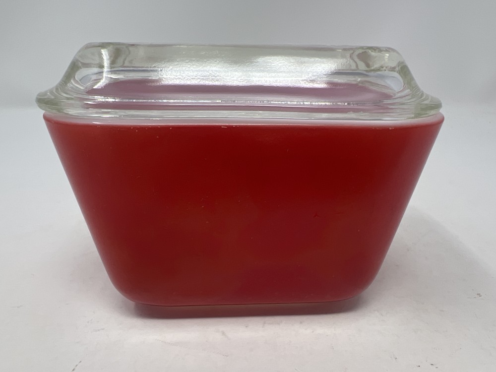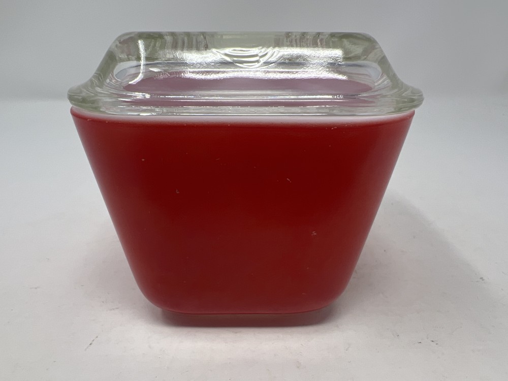 Vintage Pyrex Primary Red “Fridgie” Refrigerator Dish w/ Ribbed Lid 501 - no chips or cracks - minor paint loss as show in photos