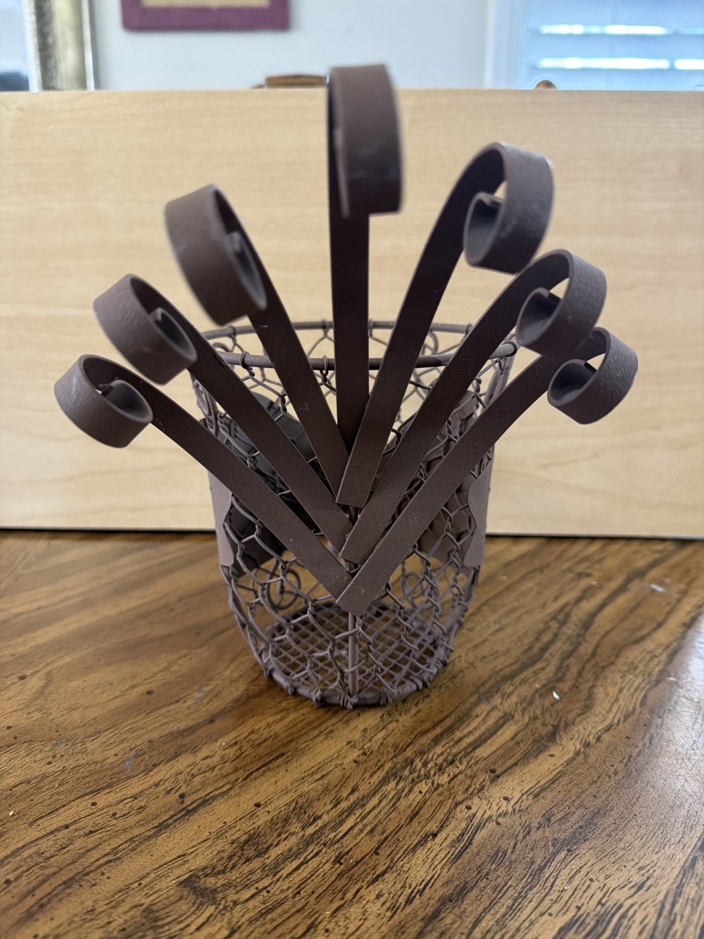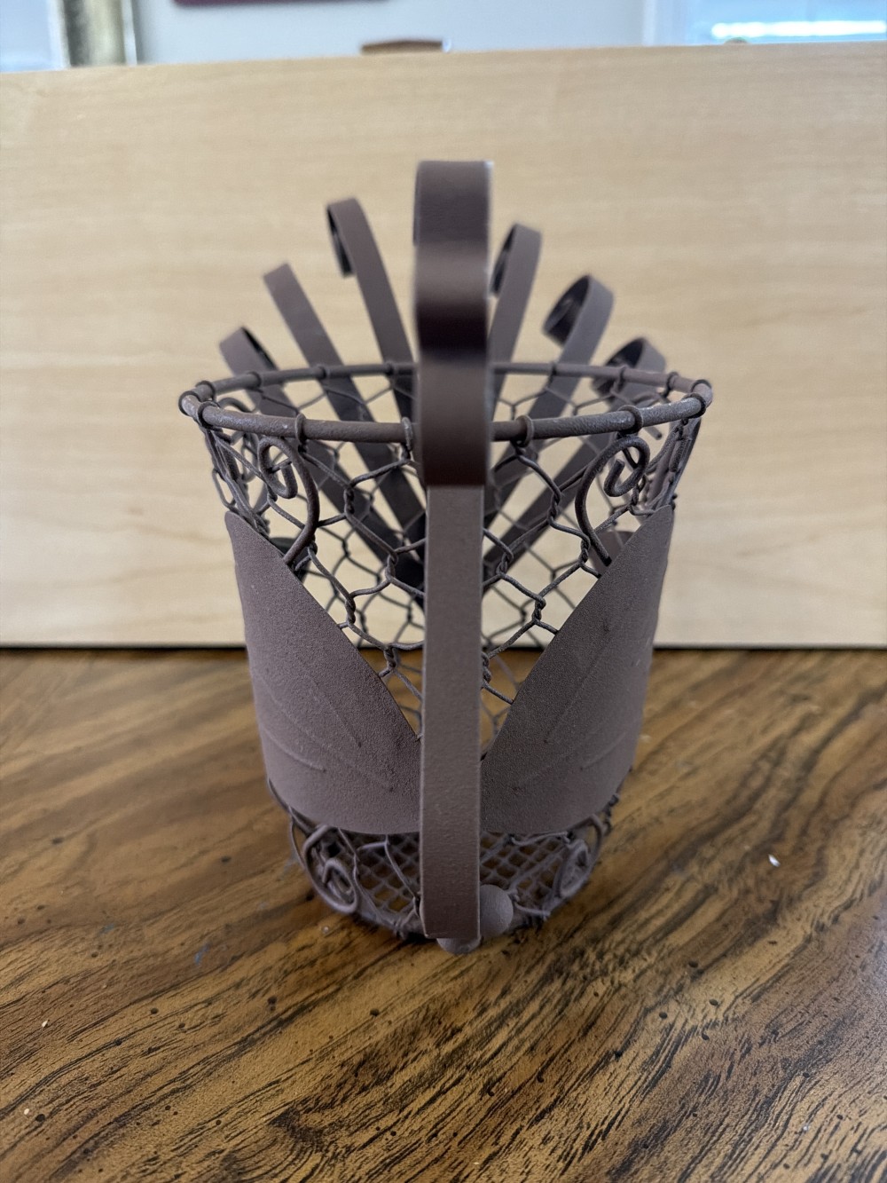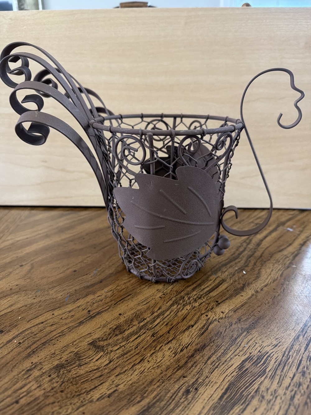 8 1/2" Brown Metal Turkey-Shaped Basket/Planter-NWOT-Curved Feathers-5 1/2" Deep