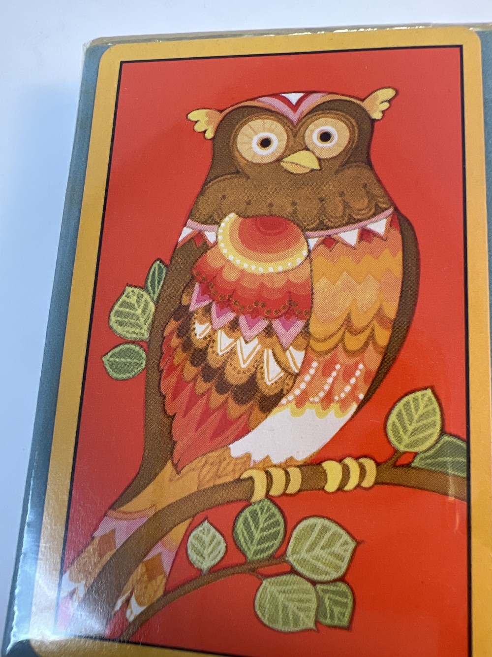 Mid Century Owl Playing Cards; Congress Cel-u-tone; original unopened box