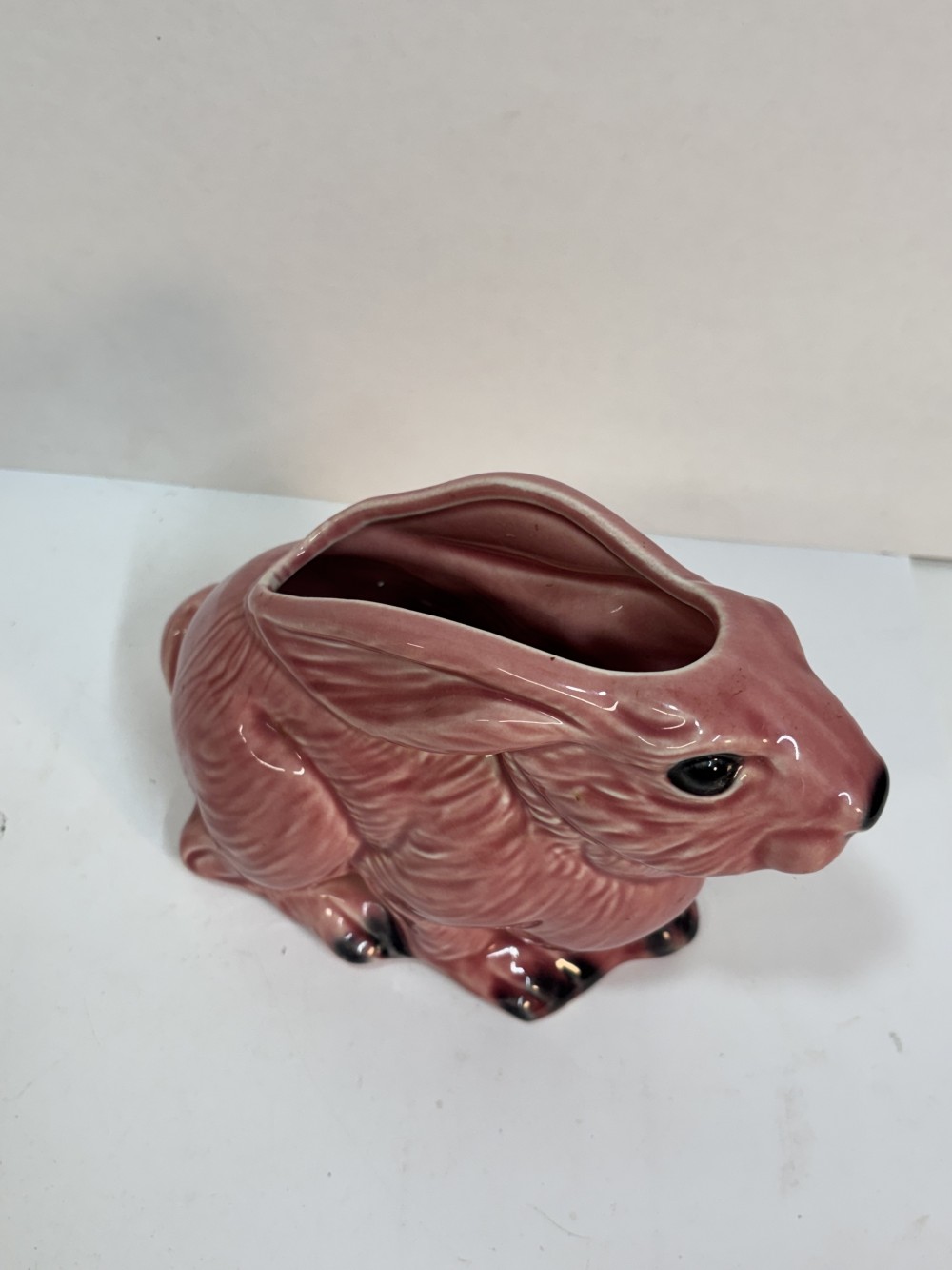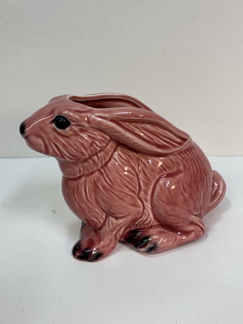 MCM Vintage Pottery Planter Ceramic Pink glaze Easter Bunny Rabbit