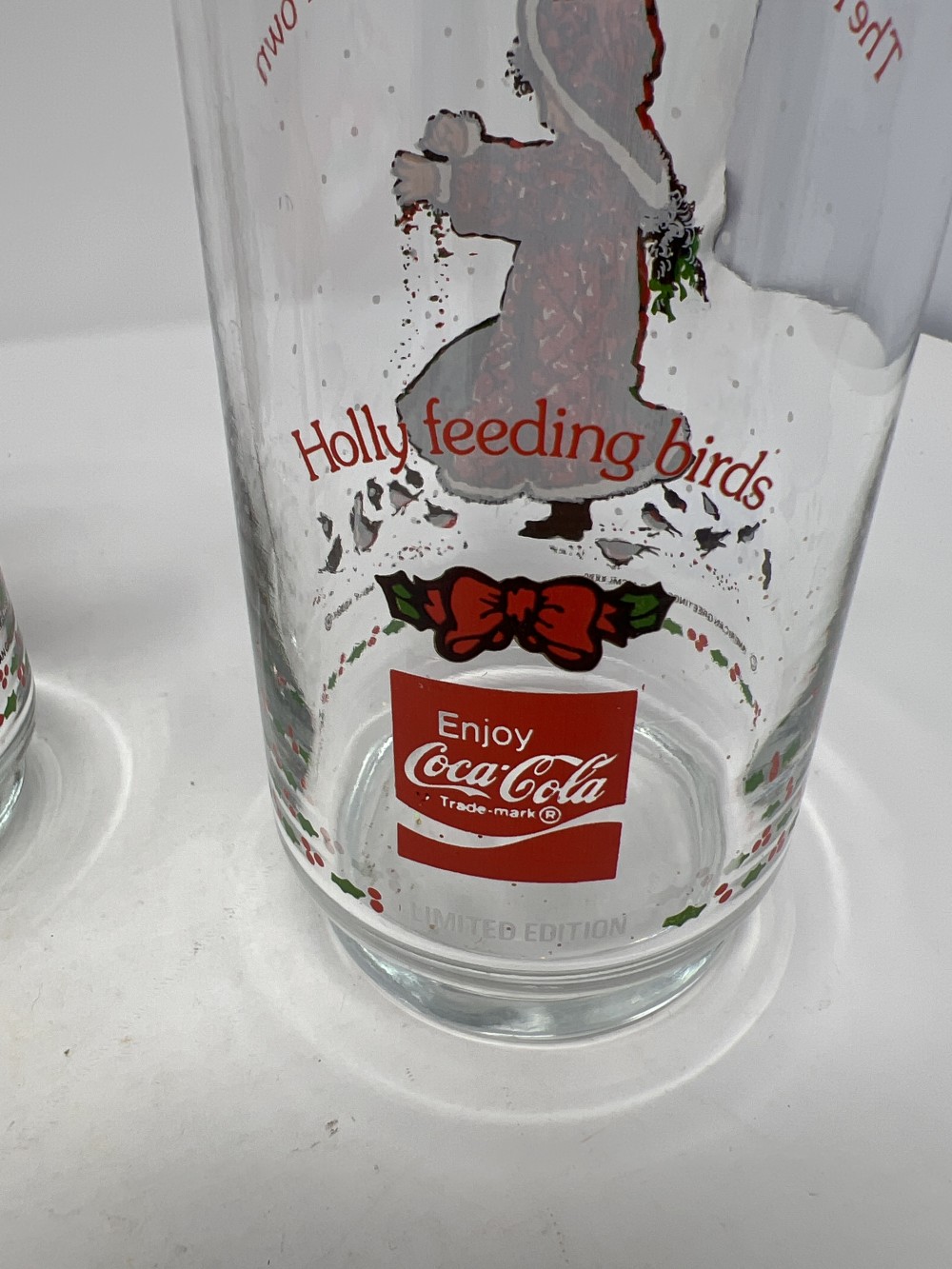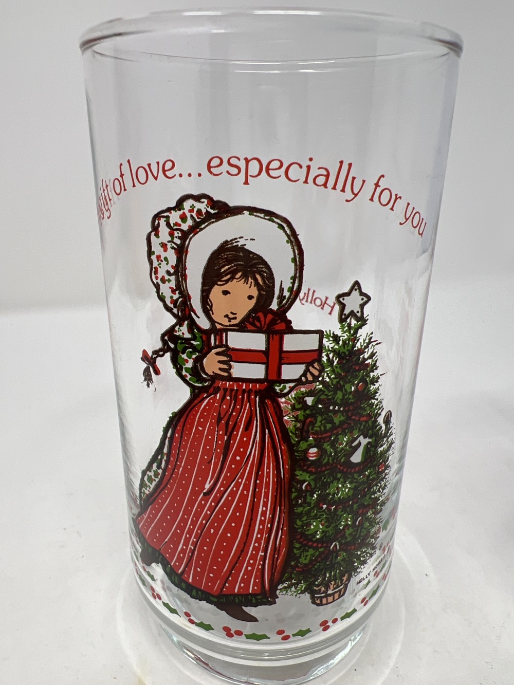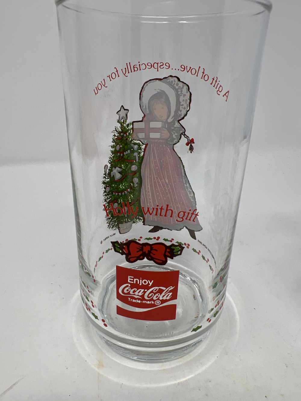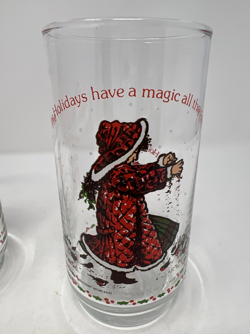 1981 Pair of Holly Hobbie Christmas Coca Cola Holiday Glasses