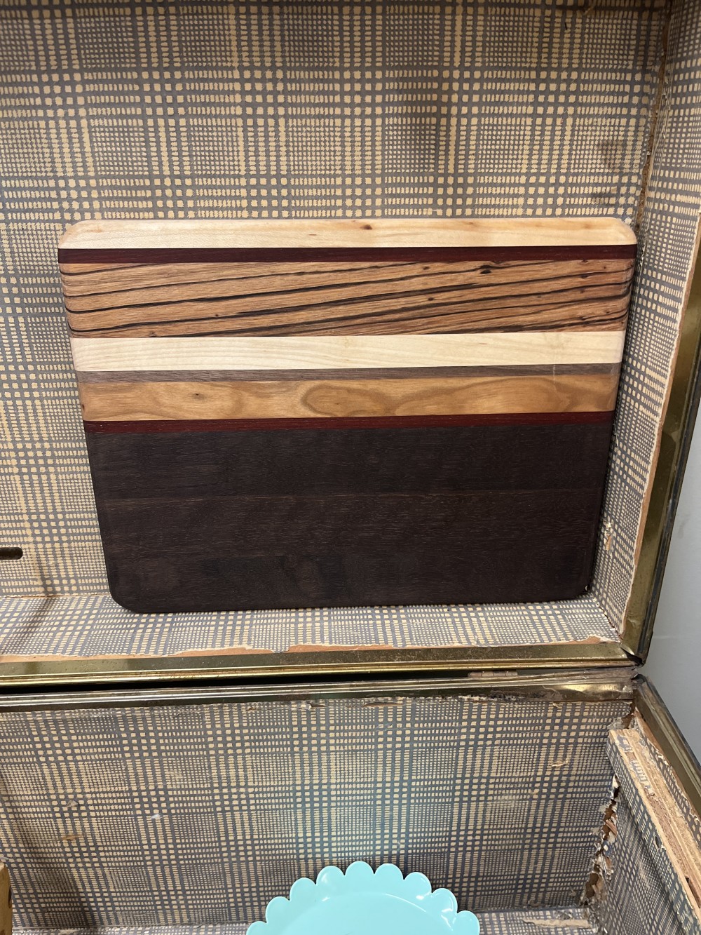 Beautiful handmade cutting board made of multiple types of wood. New condition.