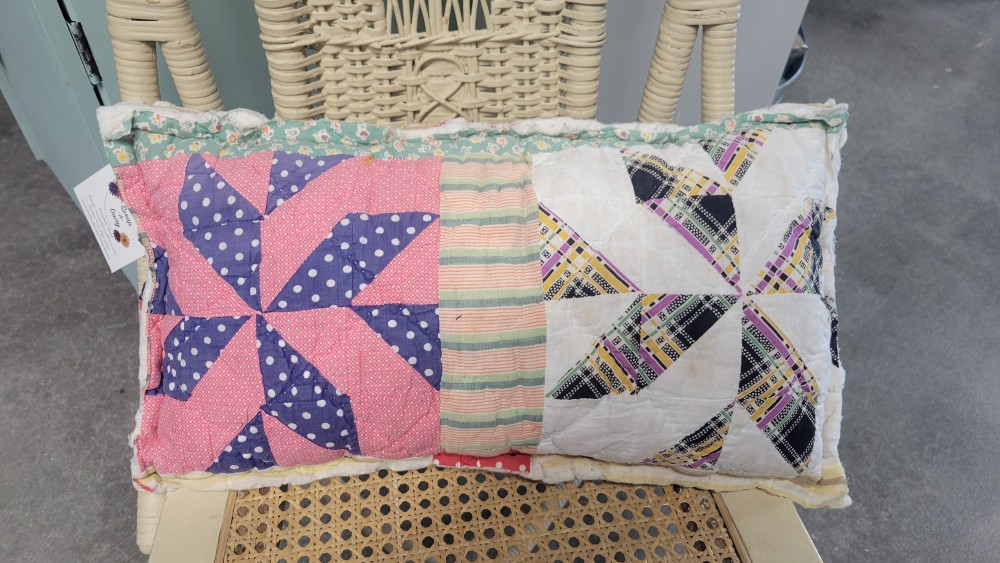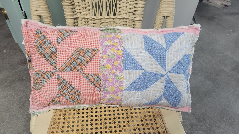 Quilt pillow and applique cut from vintage quilts. Each pillow is filled with quality poly-fil.