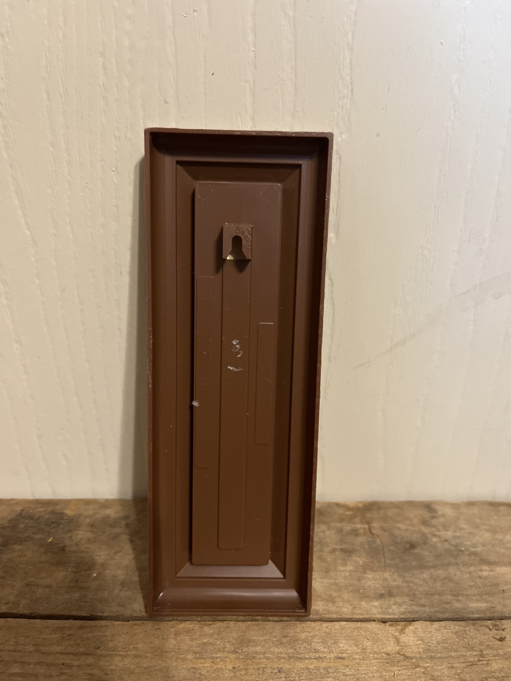 Vintage Sunbeam indoor thermometer, made in USA. Made of brown plastic with paper faceplate and glass thermometer - works!Good vintage condition with aged patina on faceplate.6.25” tall with notch on back for hanging.
