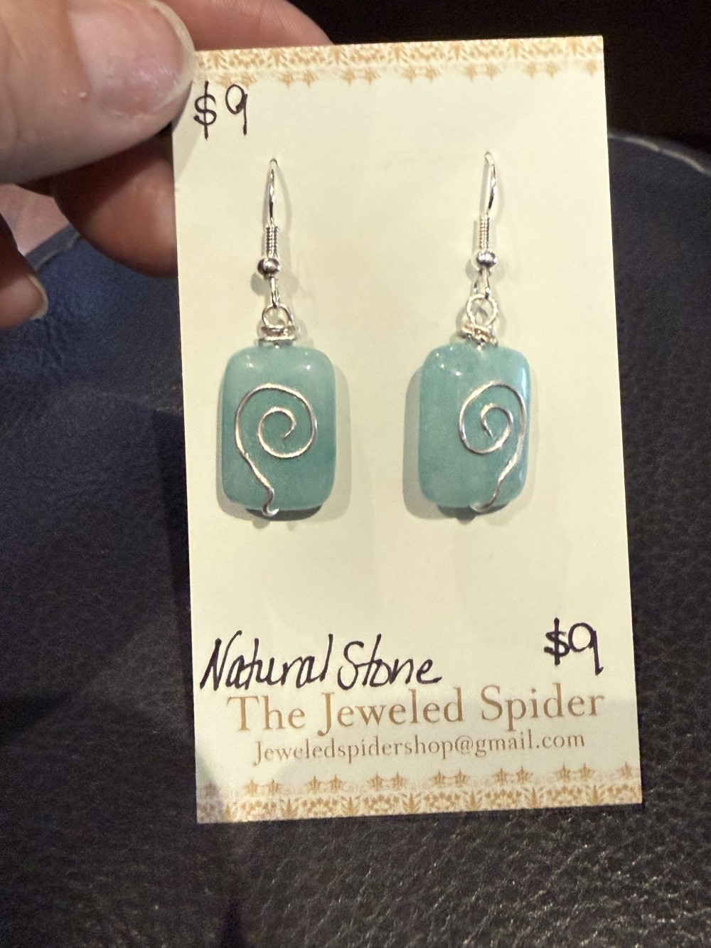 Earrings - Natural Stone with Silver Toned Wire Wrap.