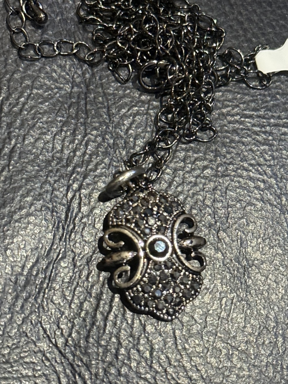 Pendant Medallion with Marcasite on a 24 inch chain with 3 inch extension.