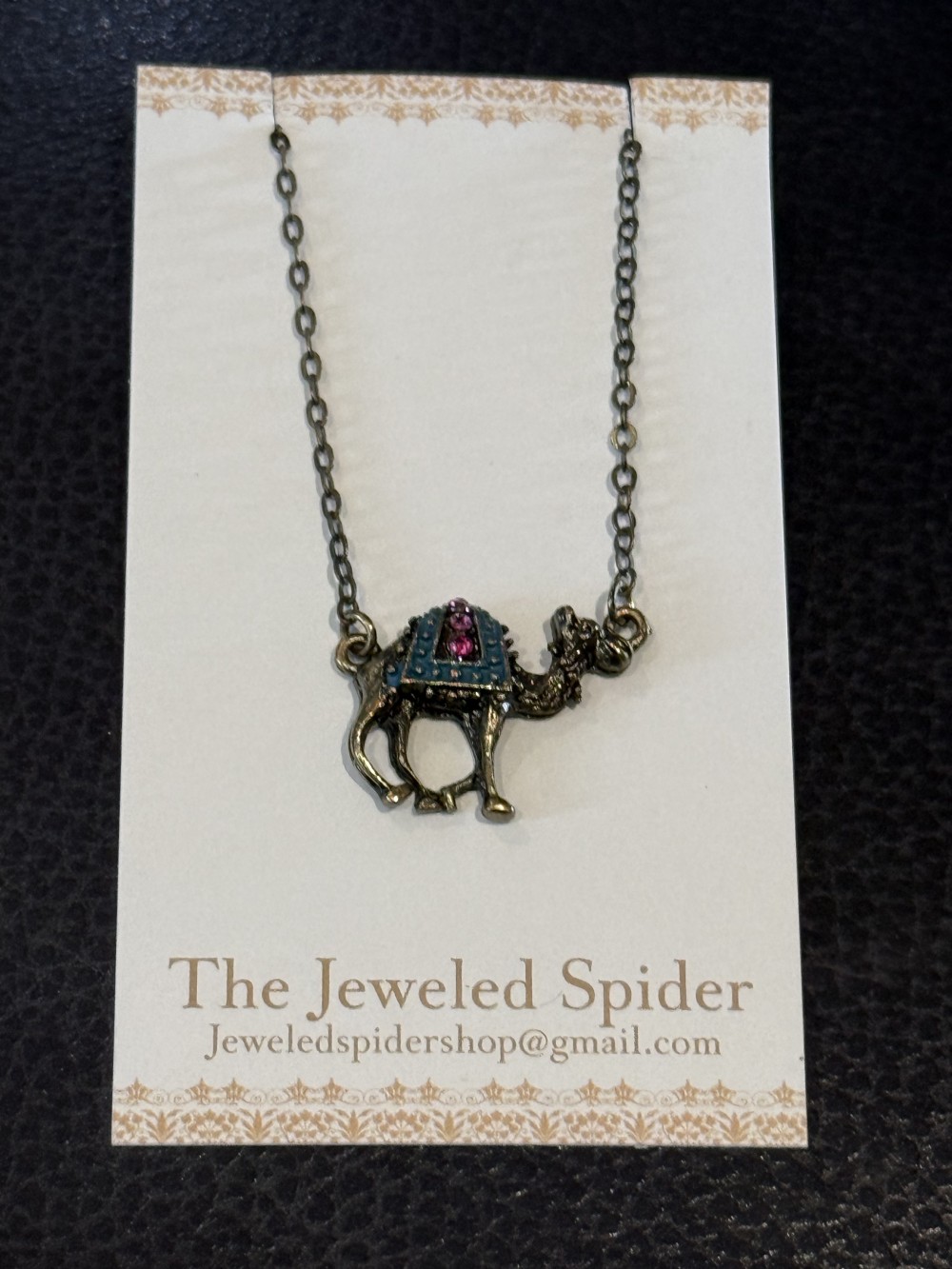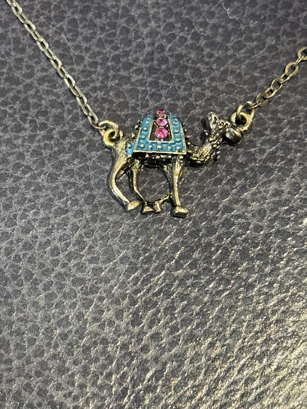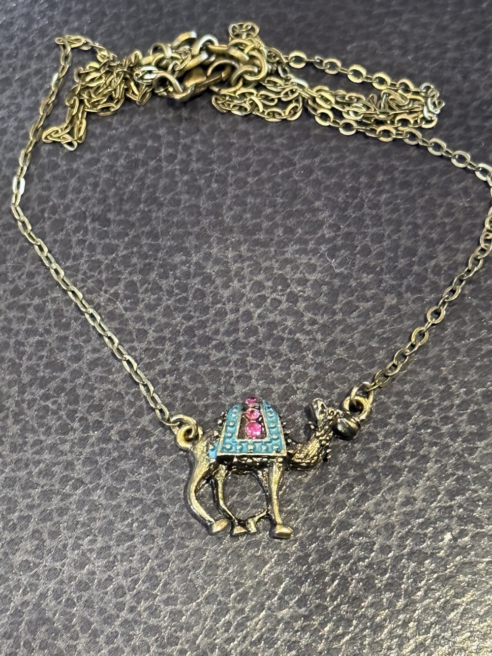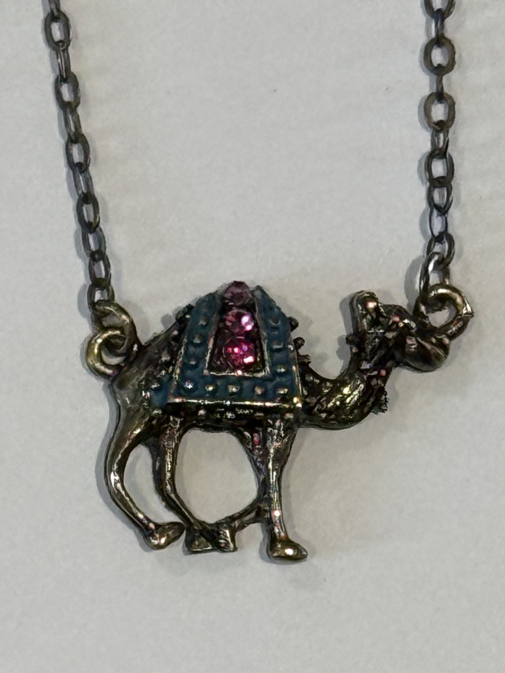 Bronze Camel with Rhinestone Accents and bronze chain, totaling 20 inches