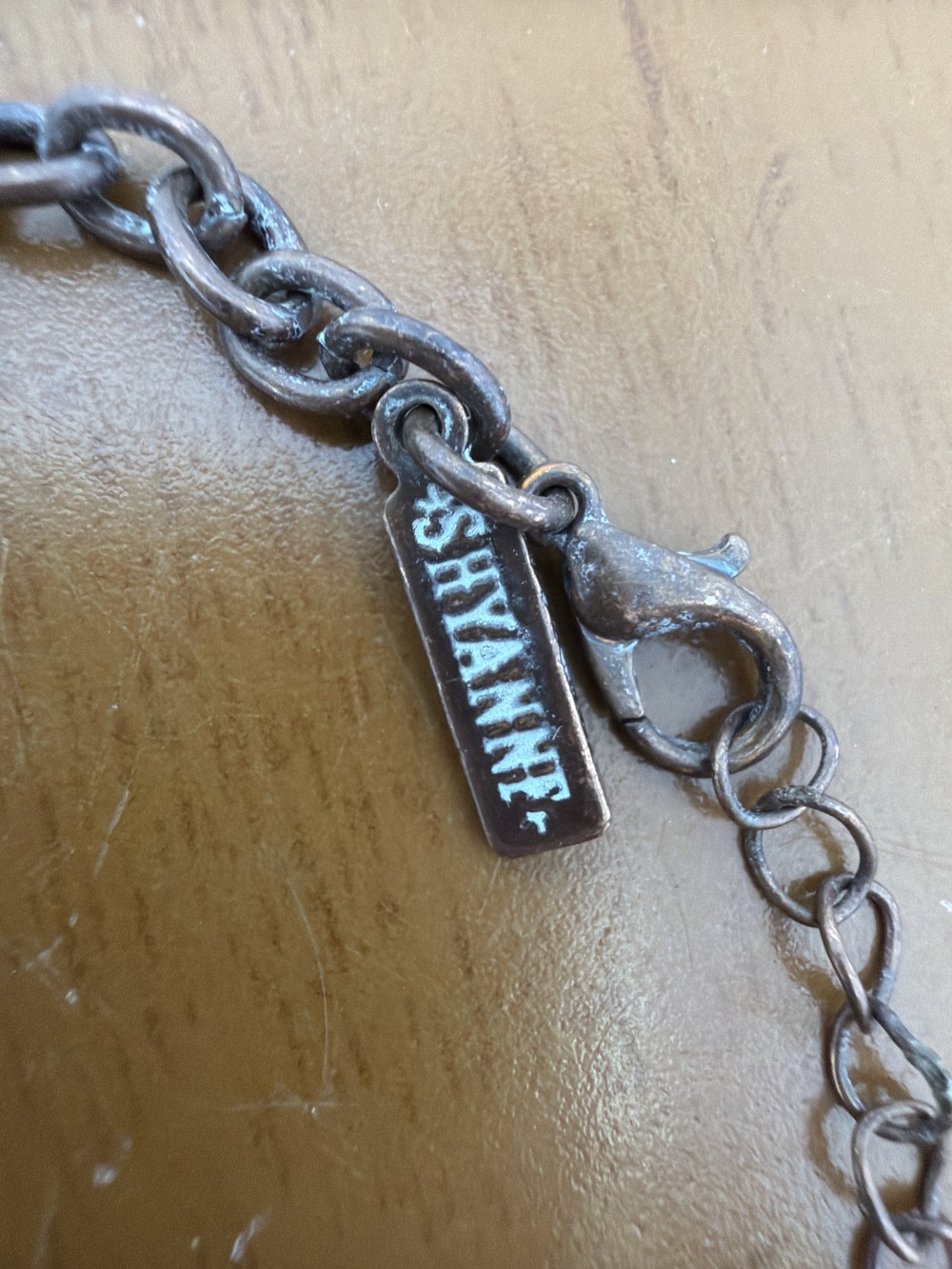 Bold multi-strand necklace with turquoise-look stones and antiqued metal in a Southwestern-inspired design. Signed Shyanne.