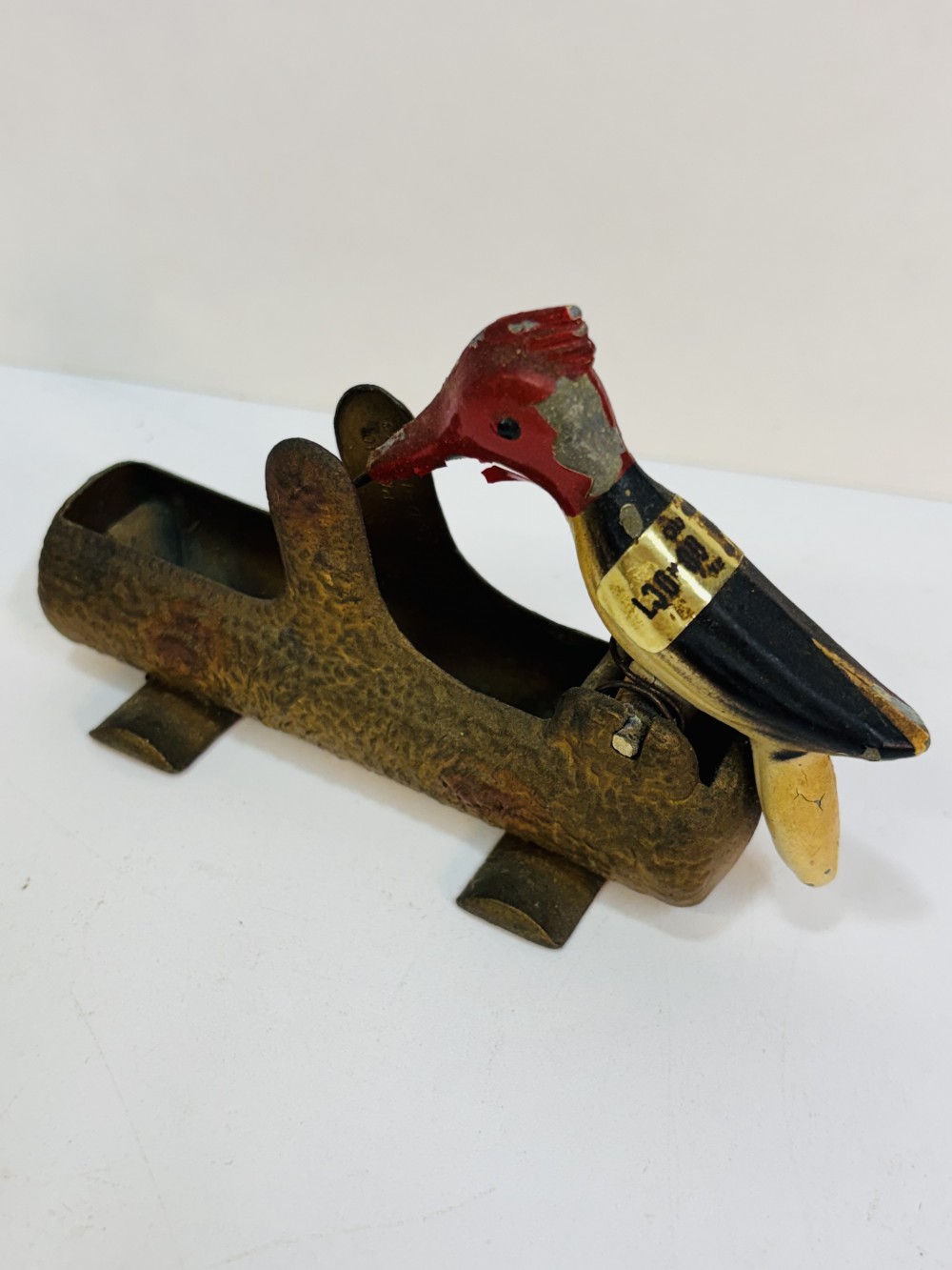 vintage mechanical woodpecker toothpick holder