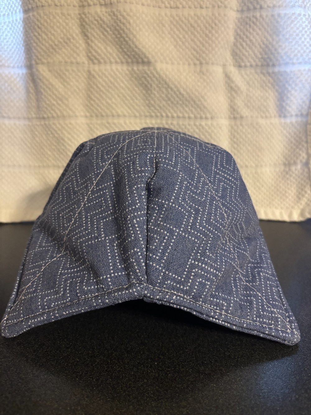 Microwave bowl cozie warmer heat resistant denim blue with white dots design fabric.4.75'T x 7"L x 7"W