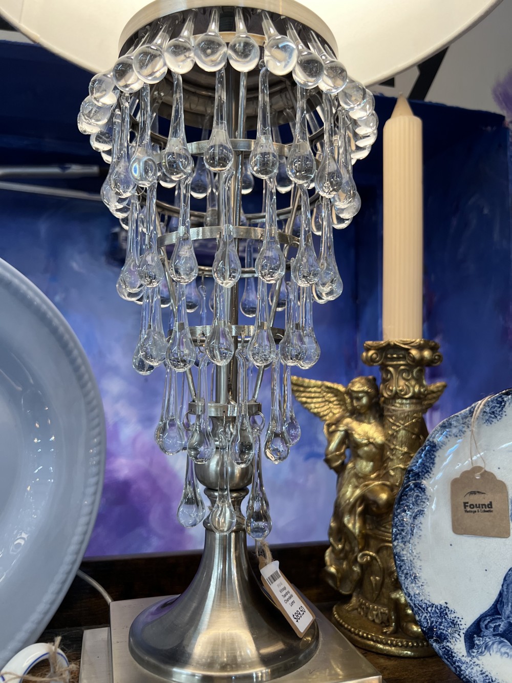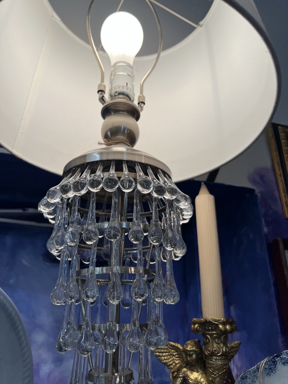 Vintage Teardrop Chandelier Style Lamp with Shade; approx 29” with Shade