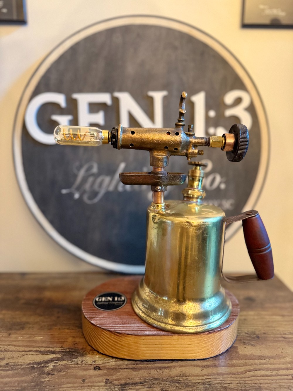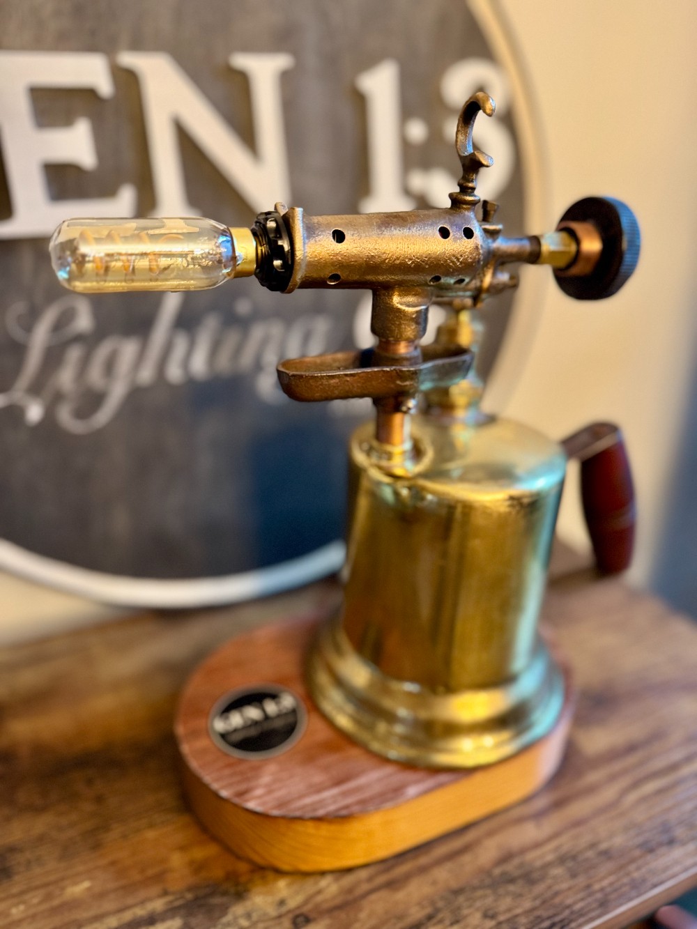 Repurposed Vintage 1930's Otto Bernz Co. Brass Blow Torch Lamp.