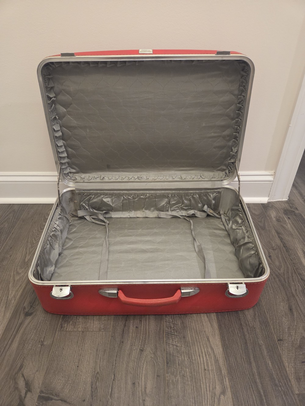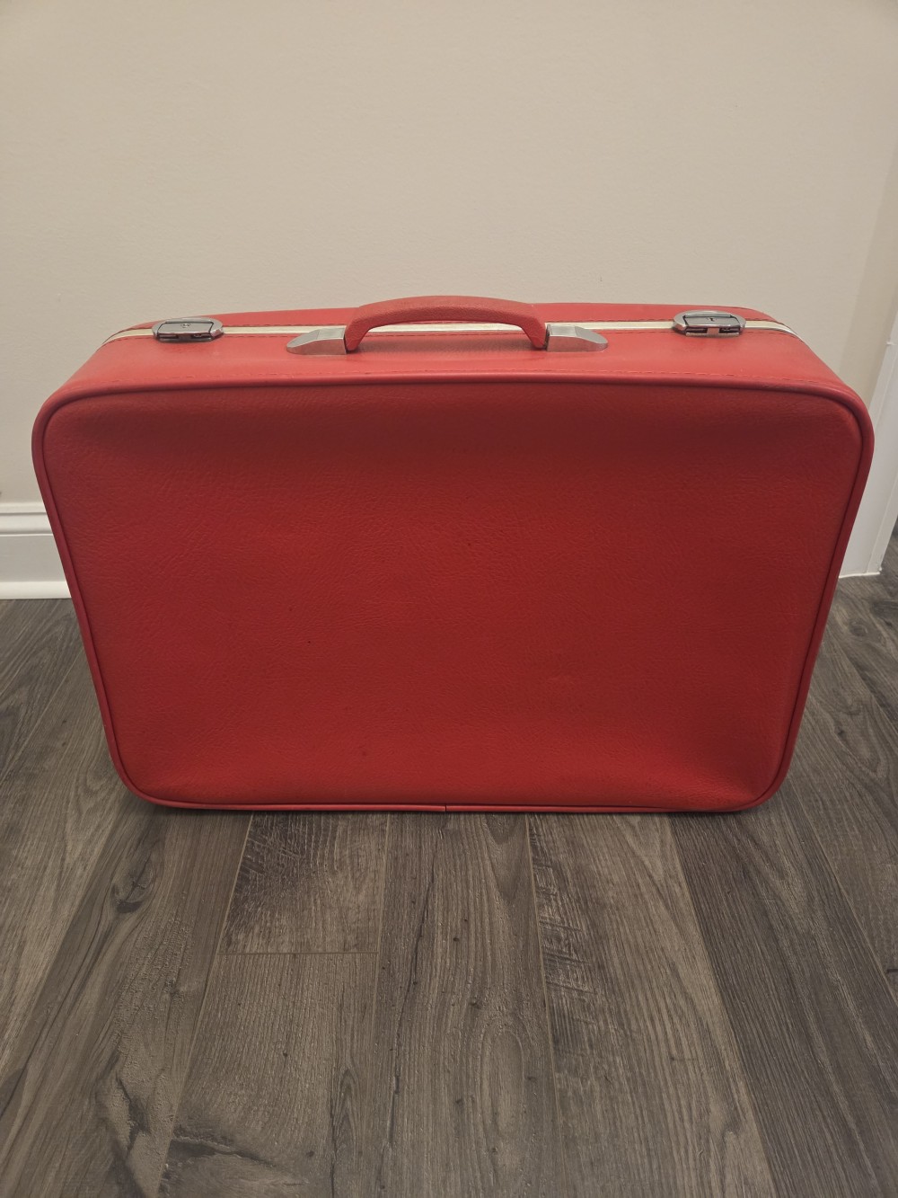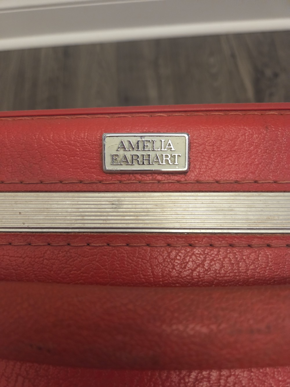 Vintage Red Amelia Earhart Suitcase. 24x30x7.