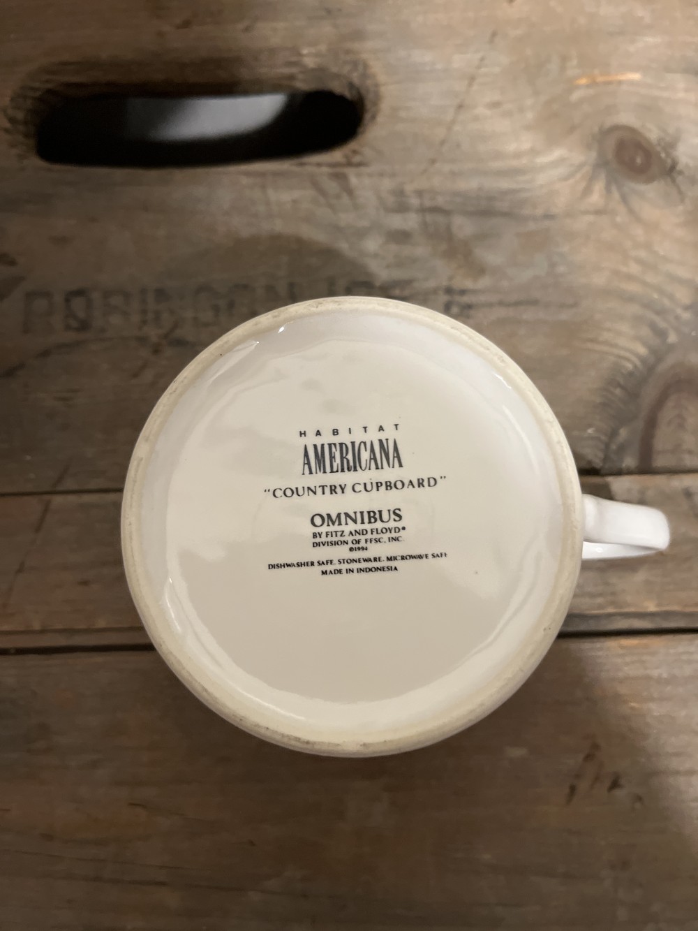 Vintage Fitz and Floyd Habitat Americana “Country Cupboard“ Omnibus mug. Two available, sold separately. These mugs are both preowned in very good condition with no damage.