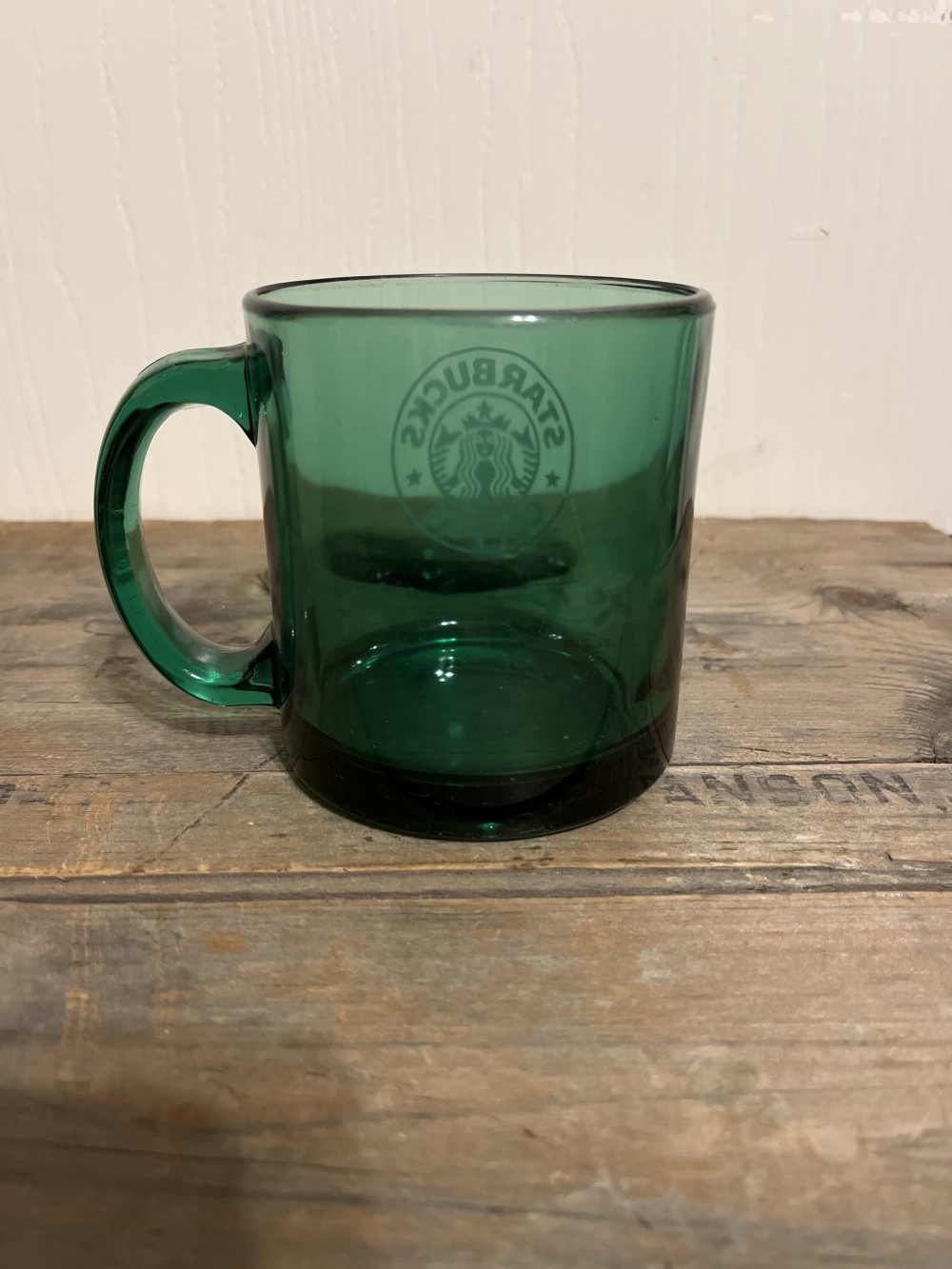 Starbucks, green glass coffee mug, made in USA. This mug is preowned in excellent condition with no chips, cracks or scratches.