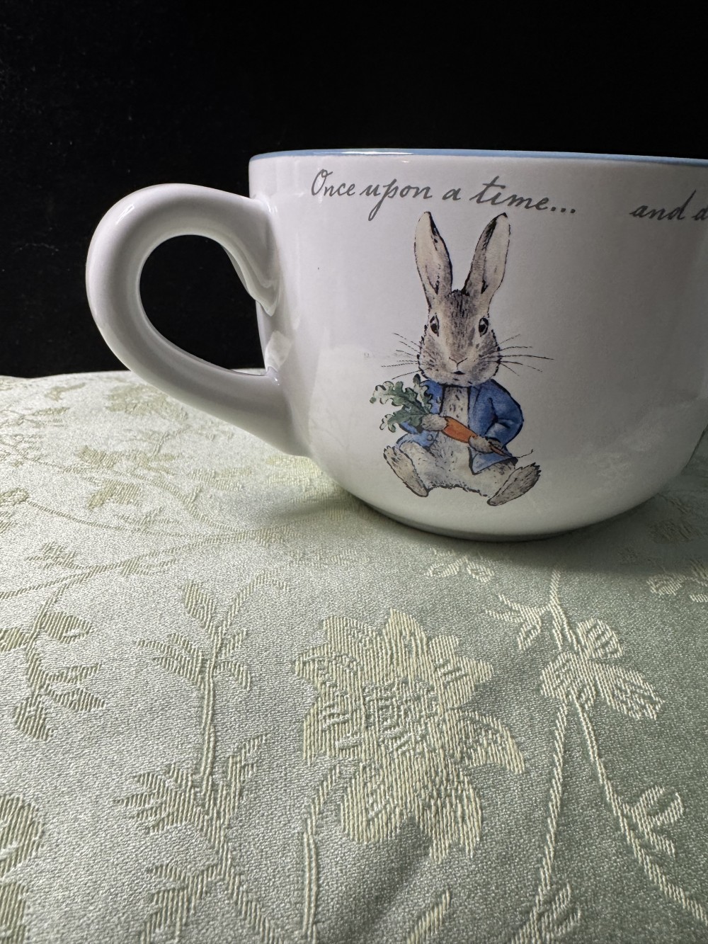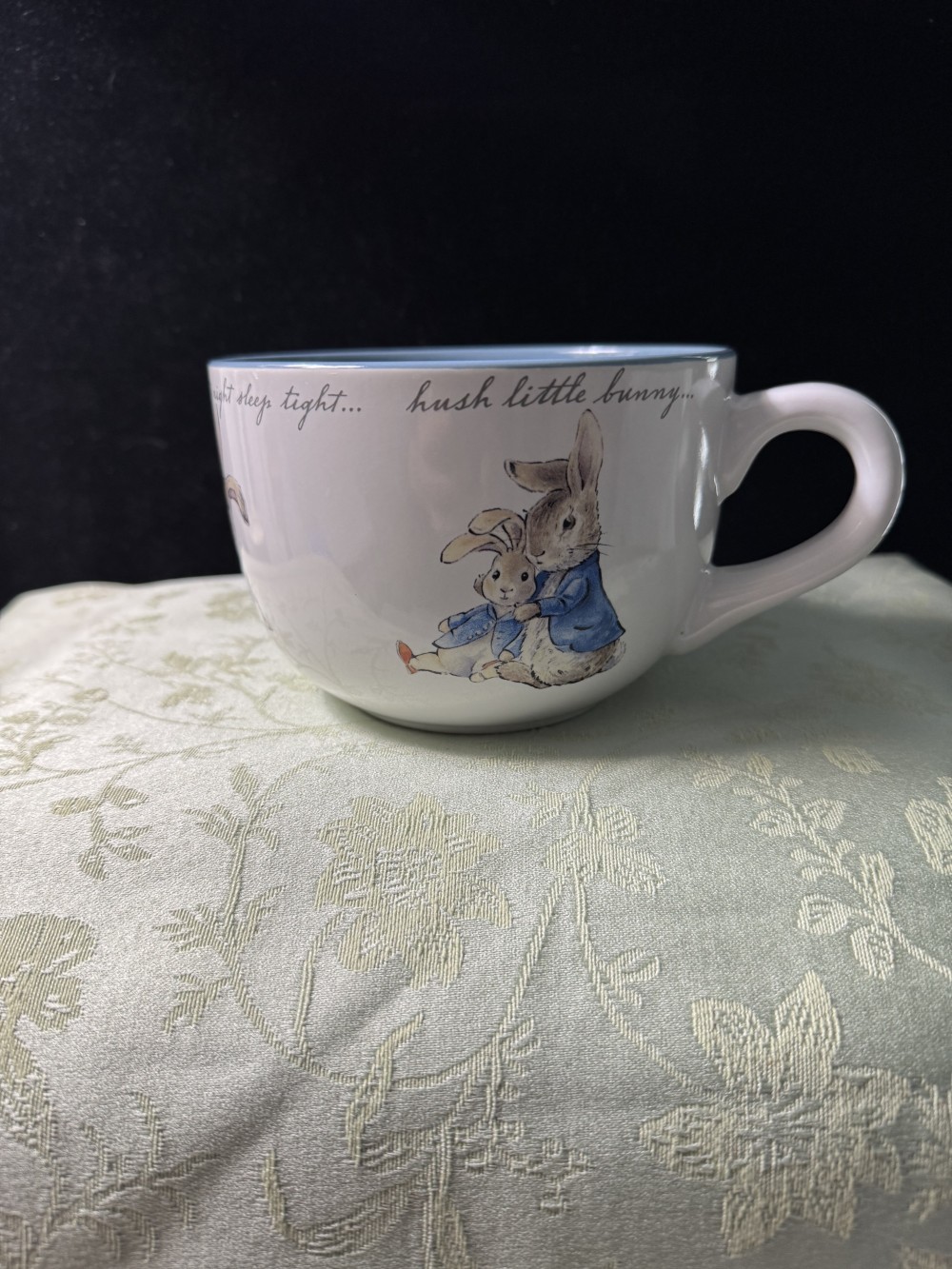 PETER RABBIT MUG BY BEATRIX POTTERLARGE 24 OZ SIZE, BLUE/WHITE
