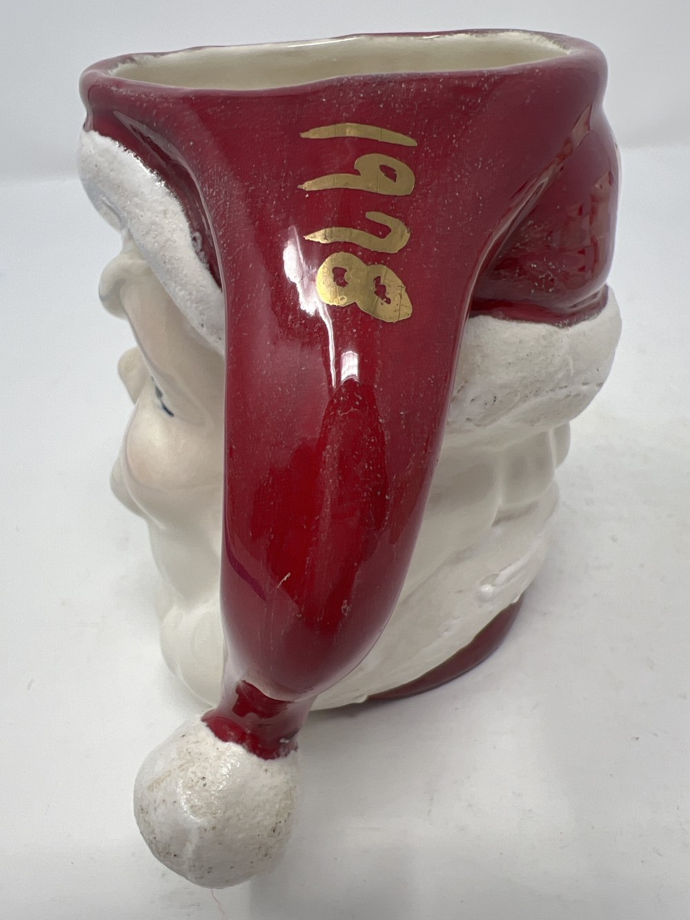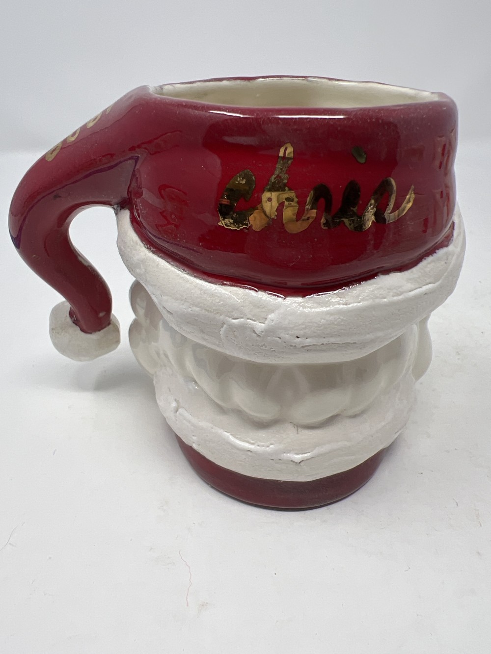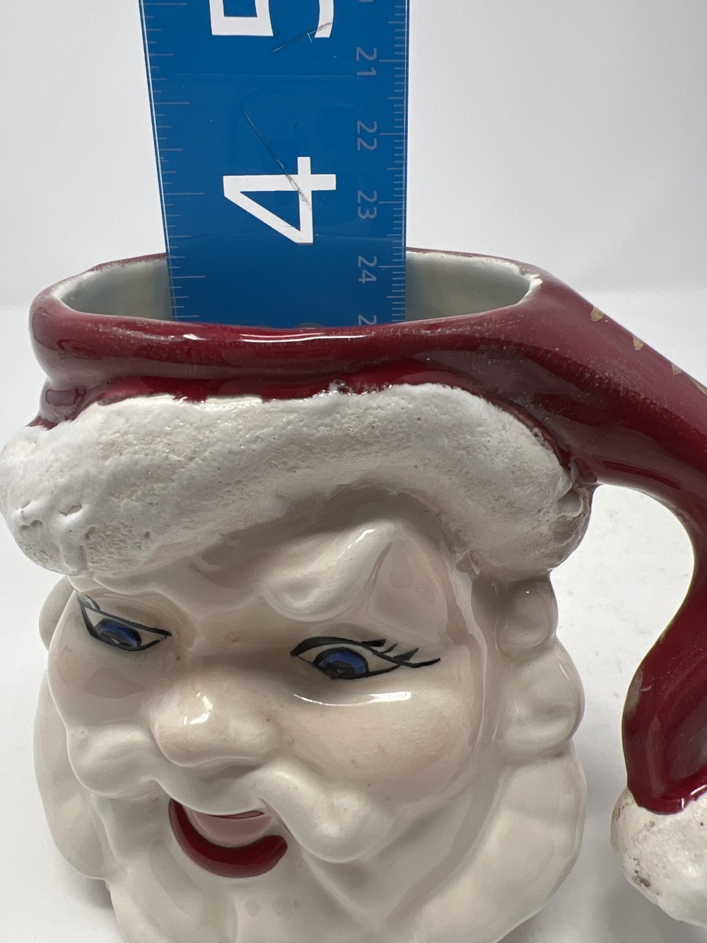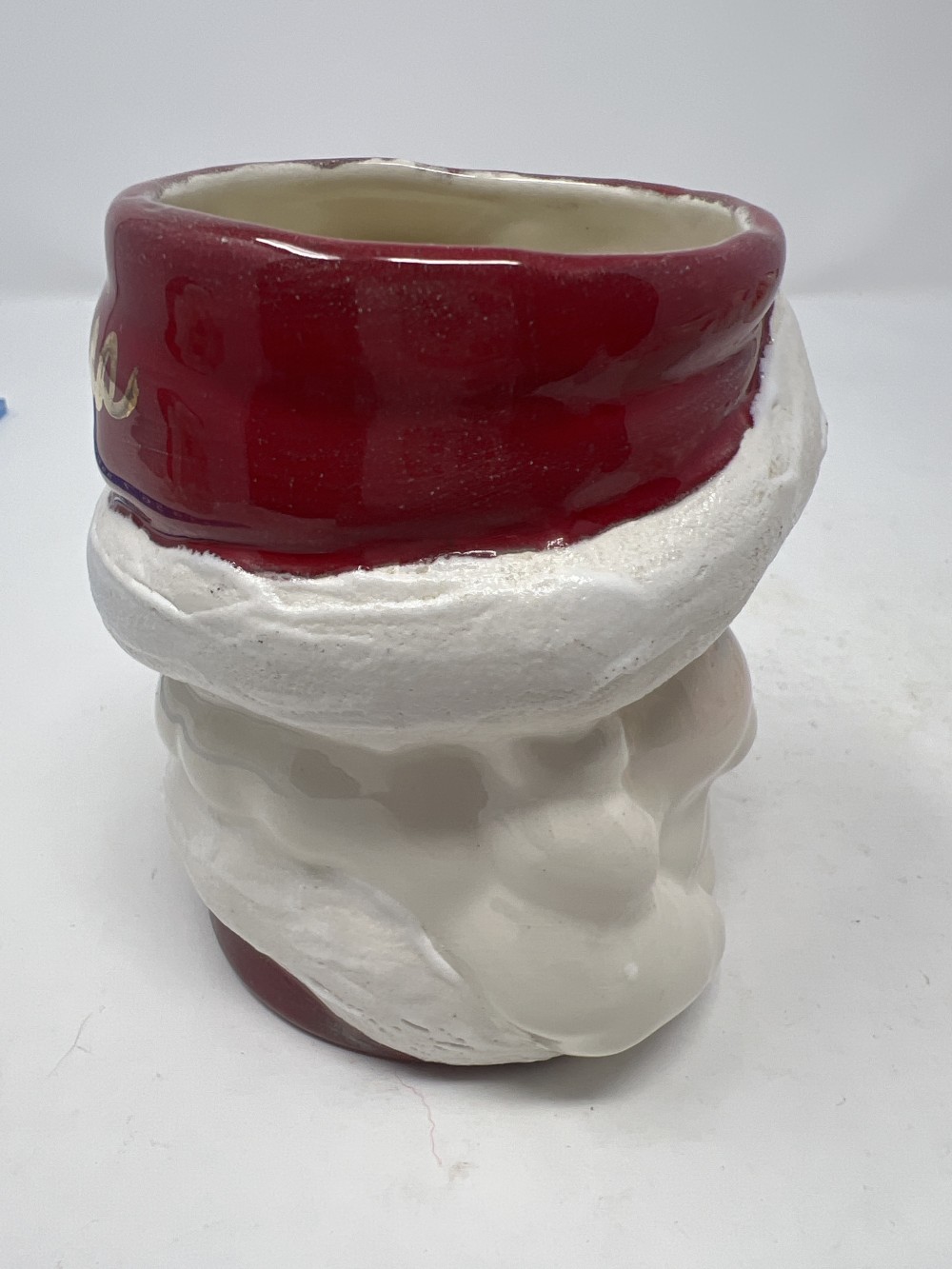 Vtg Mid Century Ceramic Santa Mug Hand Painted; approx 3.75” tall; vintage condition; 1978