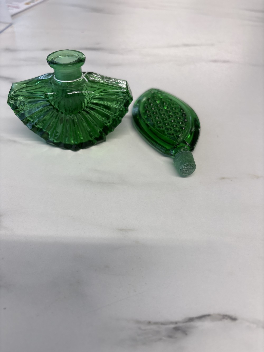 Vintage Green Art Deco Perfume Bottle