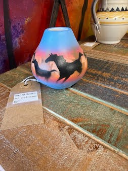 Signed Navajo horses theme pottery pot