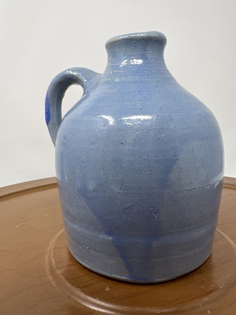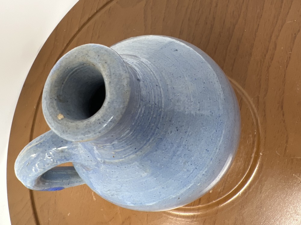 Vintage Blue Primitive Pottery Jug; approx 5.5”