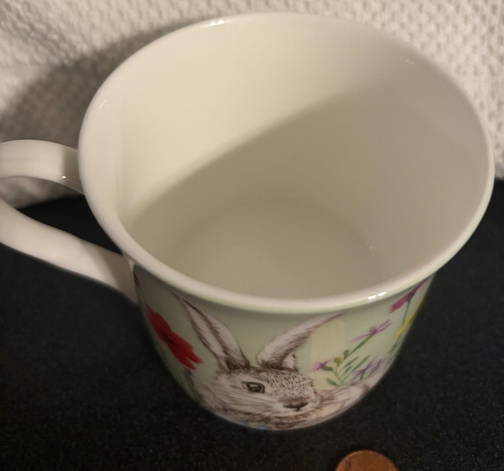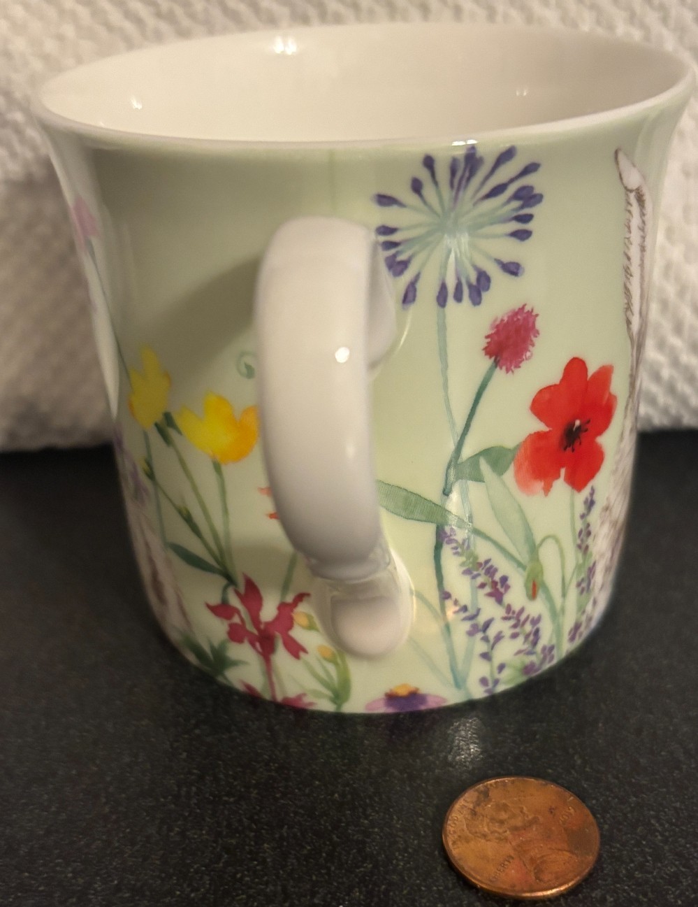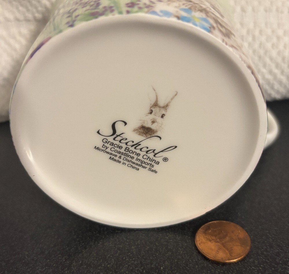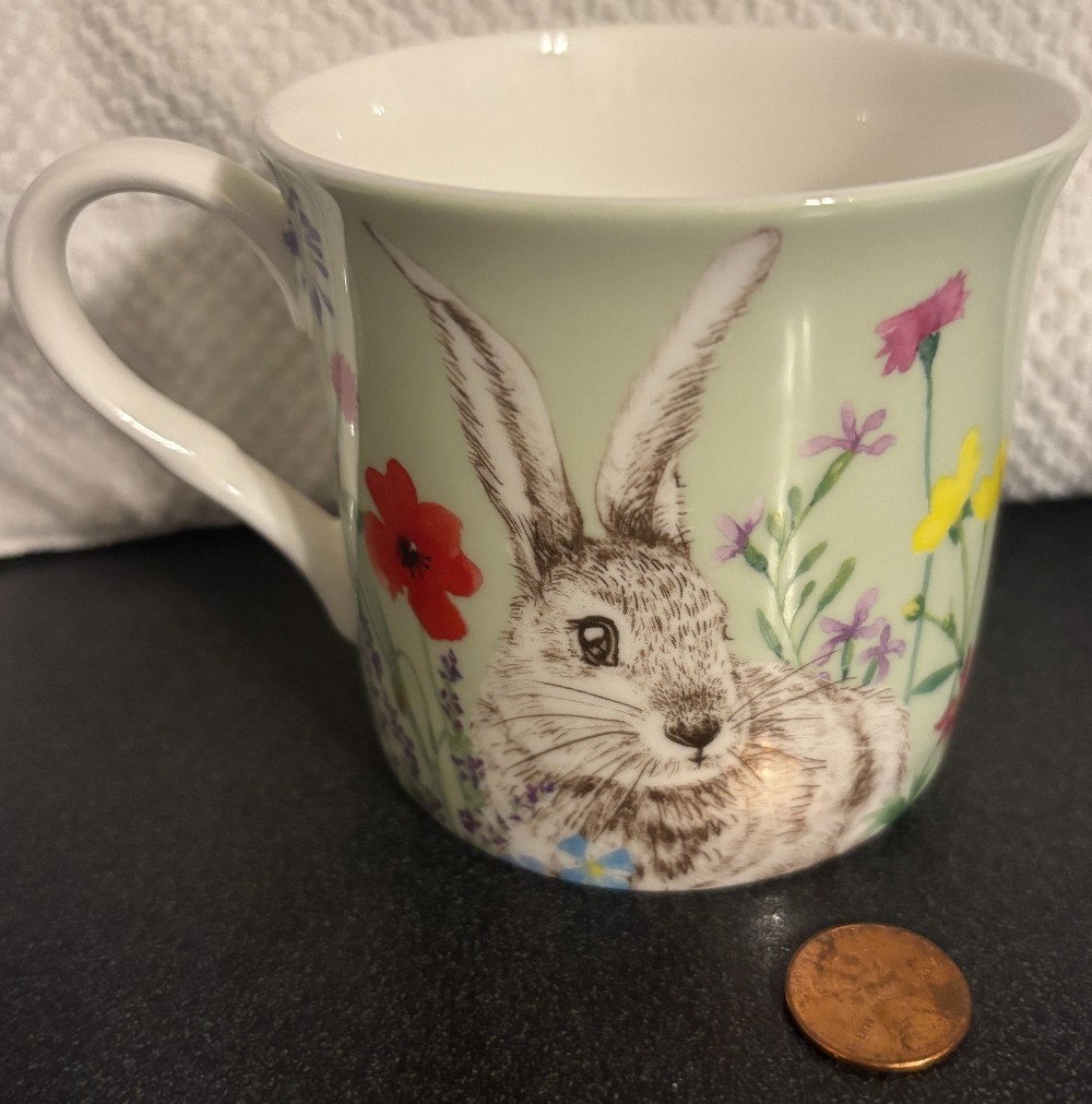 Stechcol Gracie by Coastline Imports bone China rabbit/bunny pale green floral mug. EUC Microwave & dishwasher safe. Made in China.