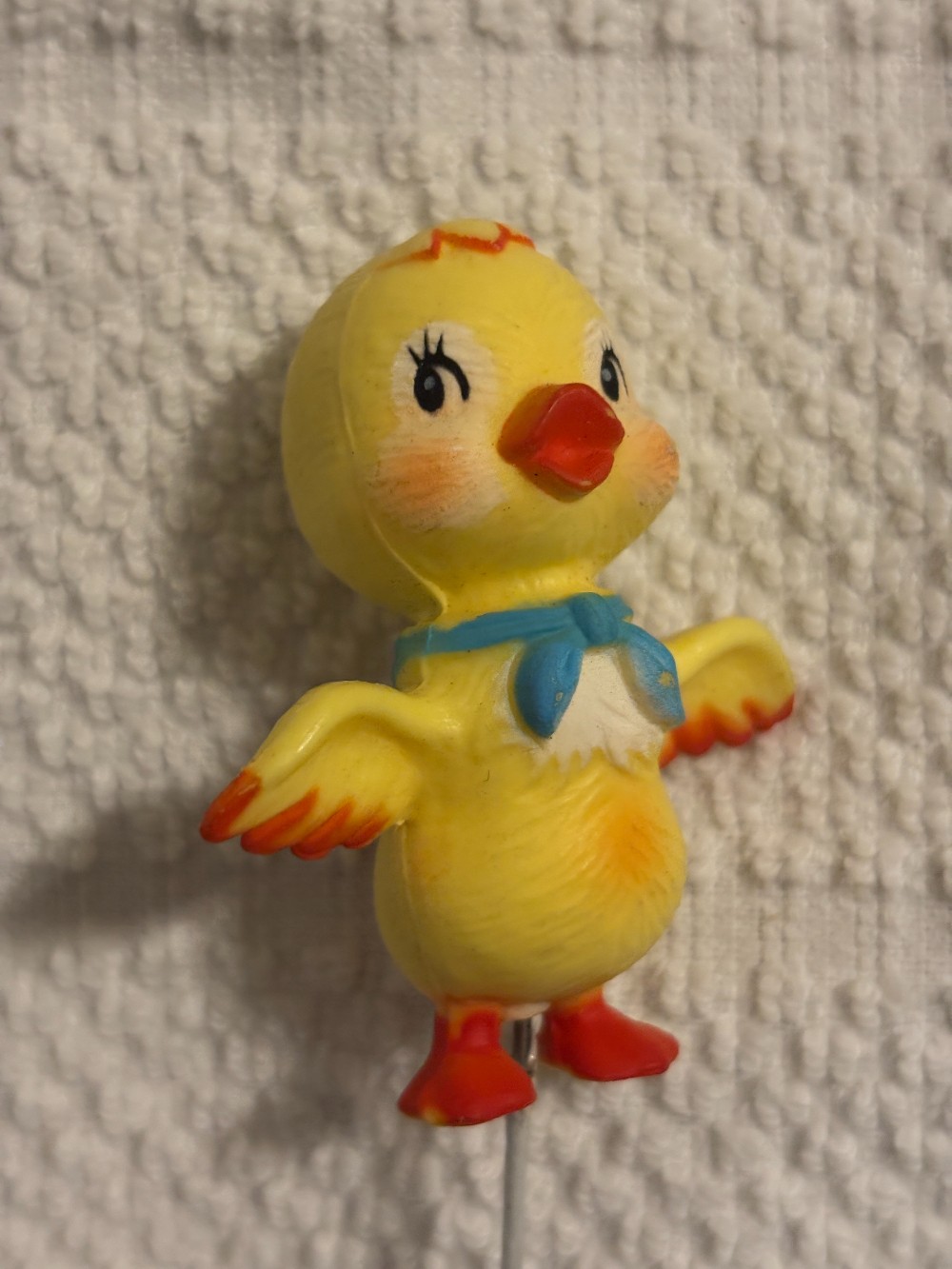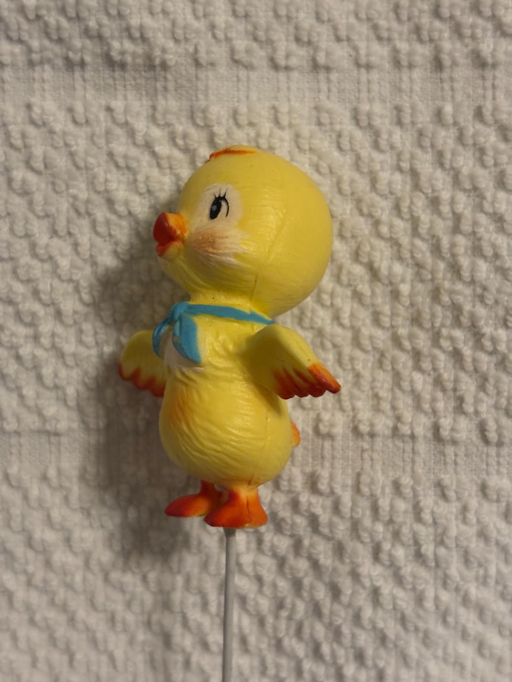 Vintage Easter hard plastic happy yellow chick pick.6.5"T
