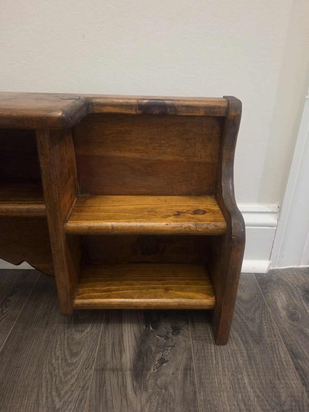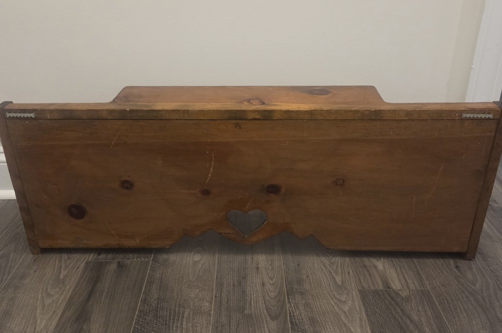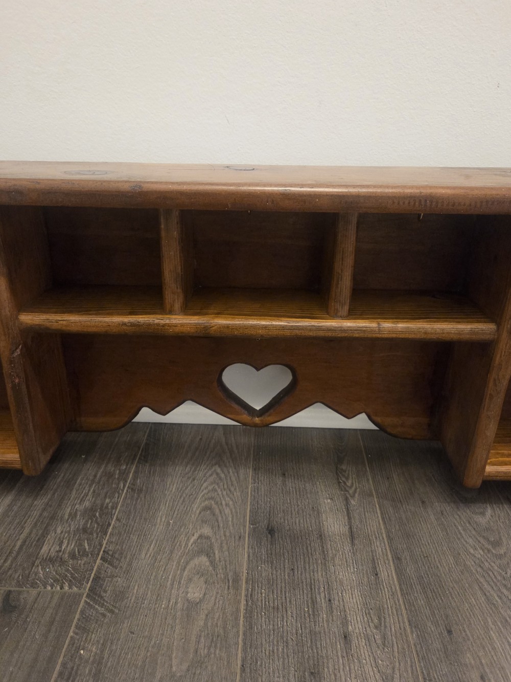 Vintage Wood Wall Shelf with Cubbies and Heart Cutout. Approximately 35"x13".