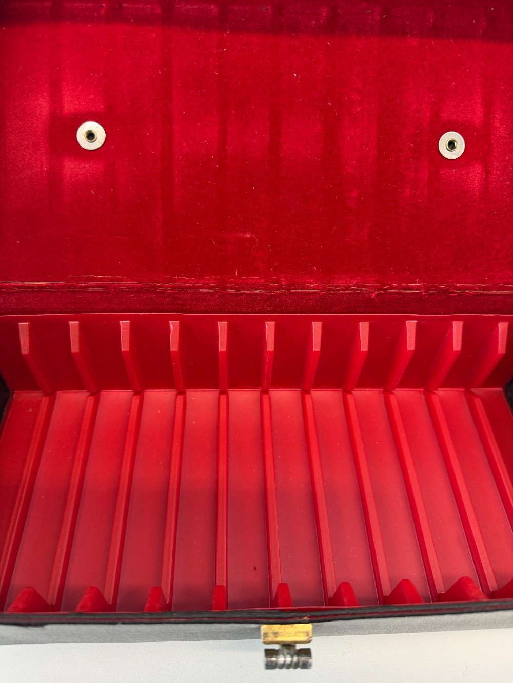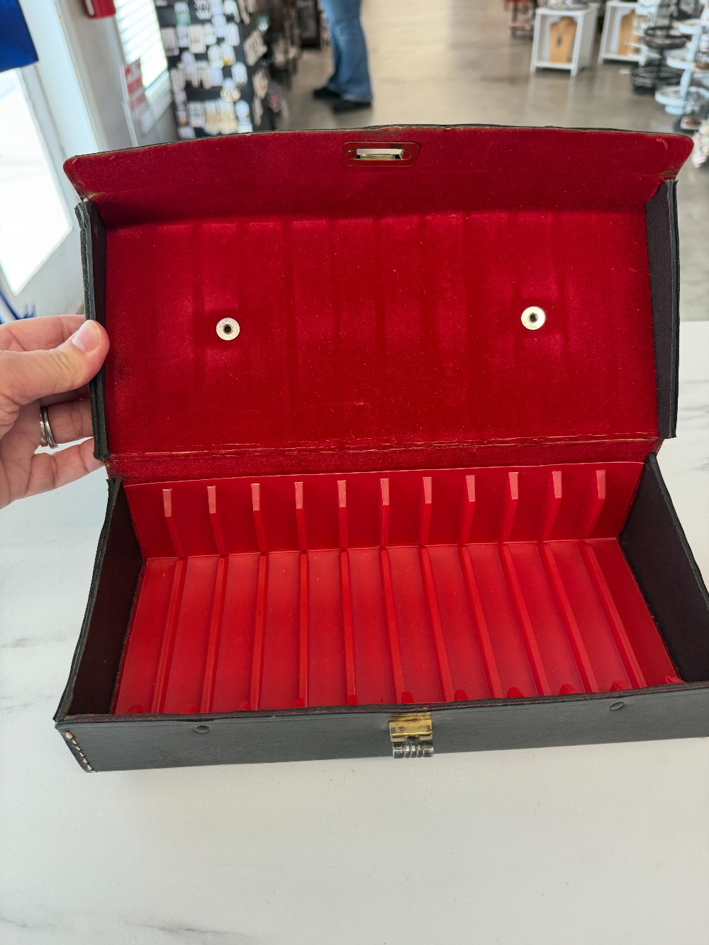 Good used condition.Hard black case with handle and a turning latch. 10.5" x 4.5".