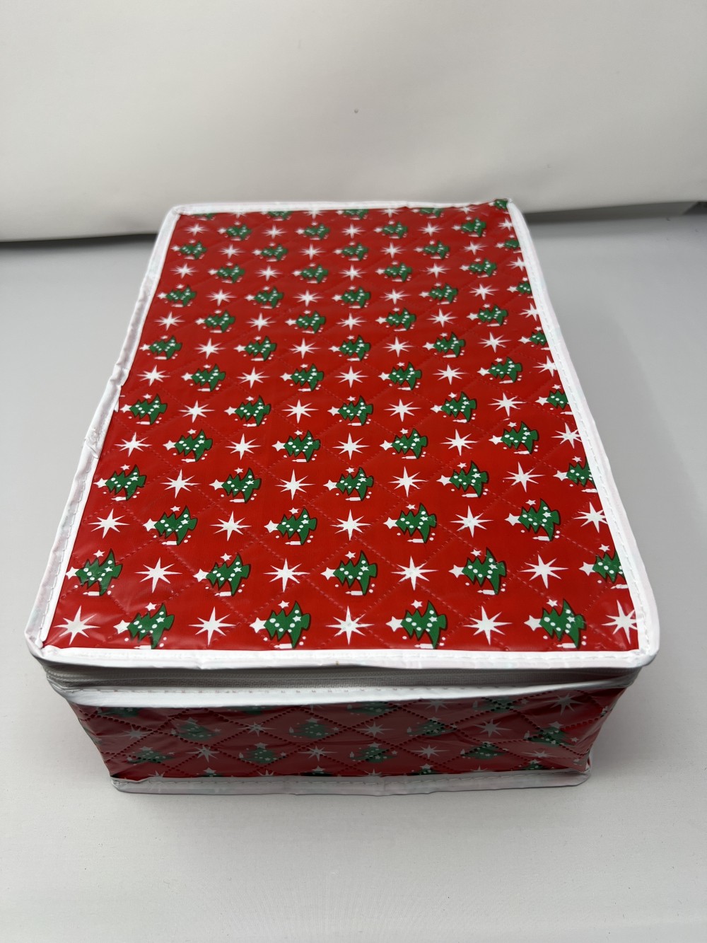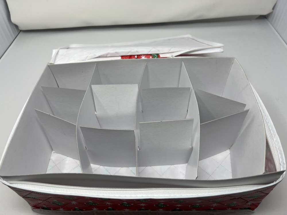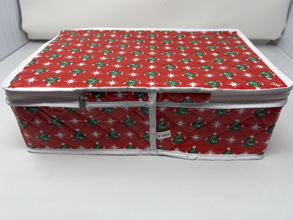 Vtg Zippered Red Quilted Ornament Storage; made in Taiwan