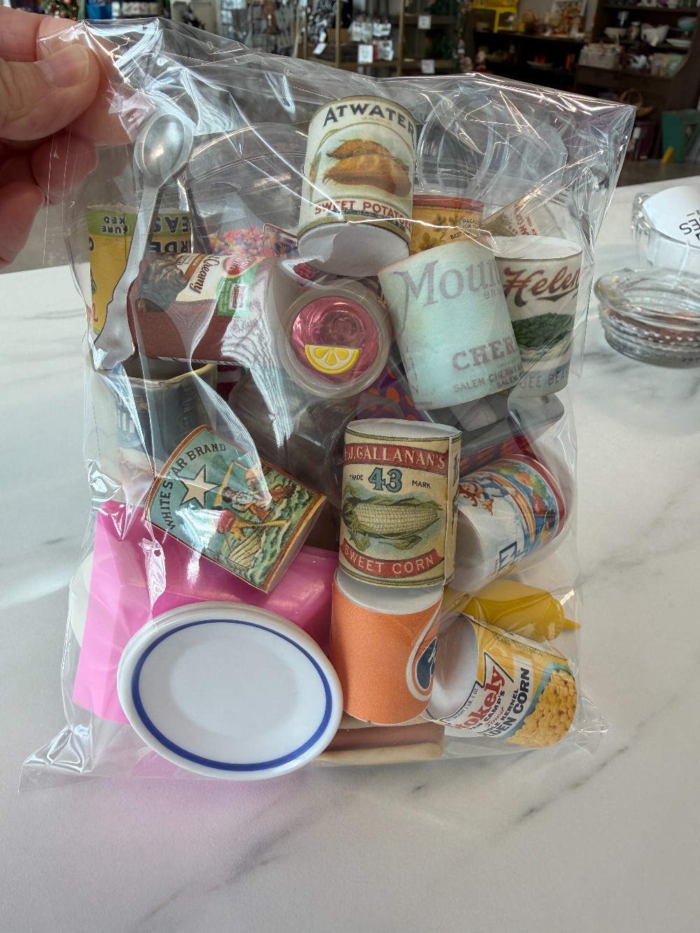 Our Generation 18" Doll food and accessories. Plates, silverware, canned goods, etc.