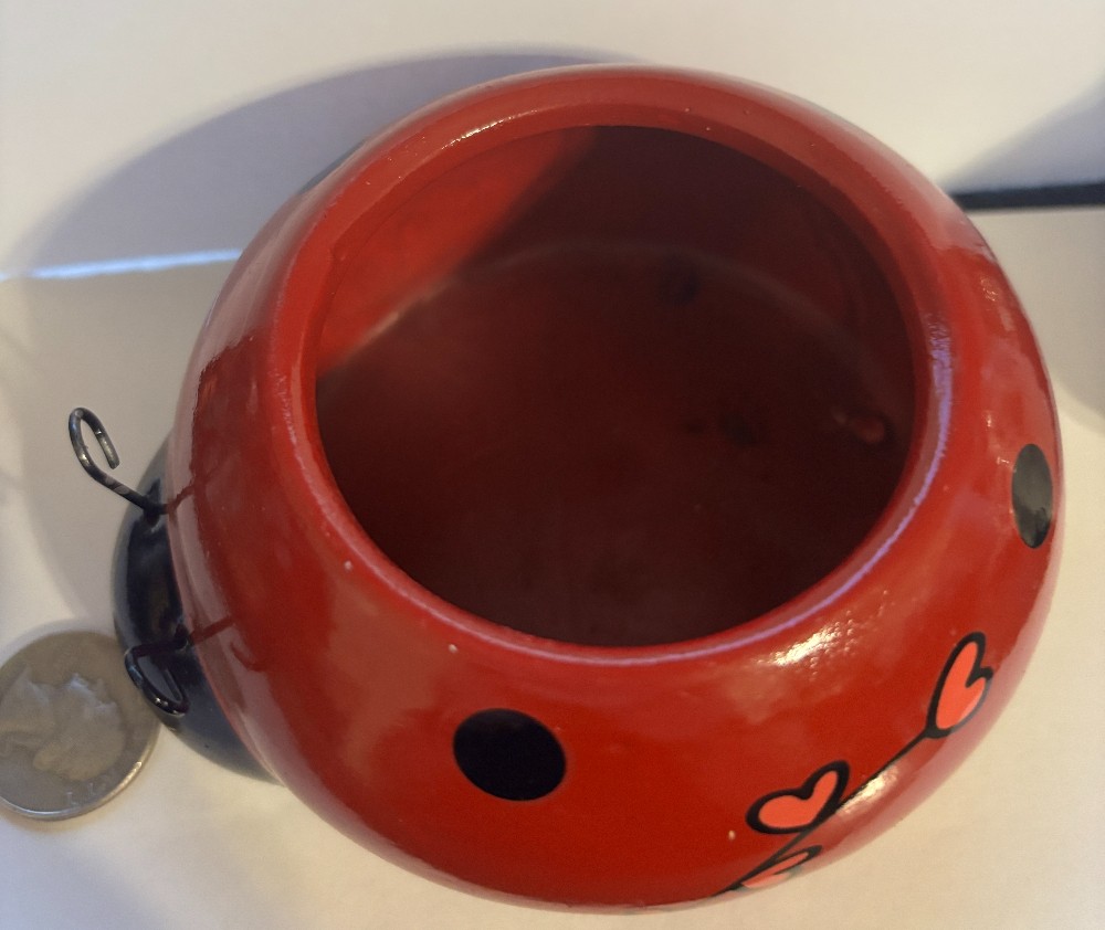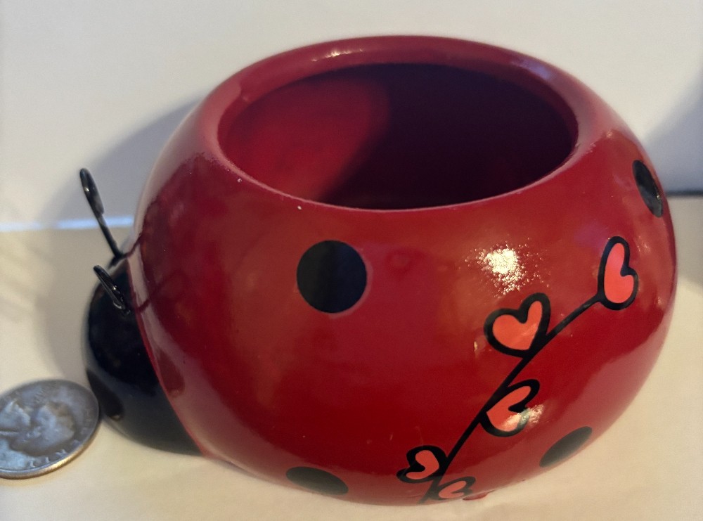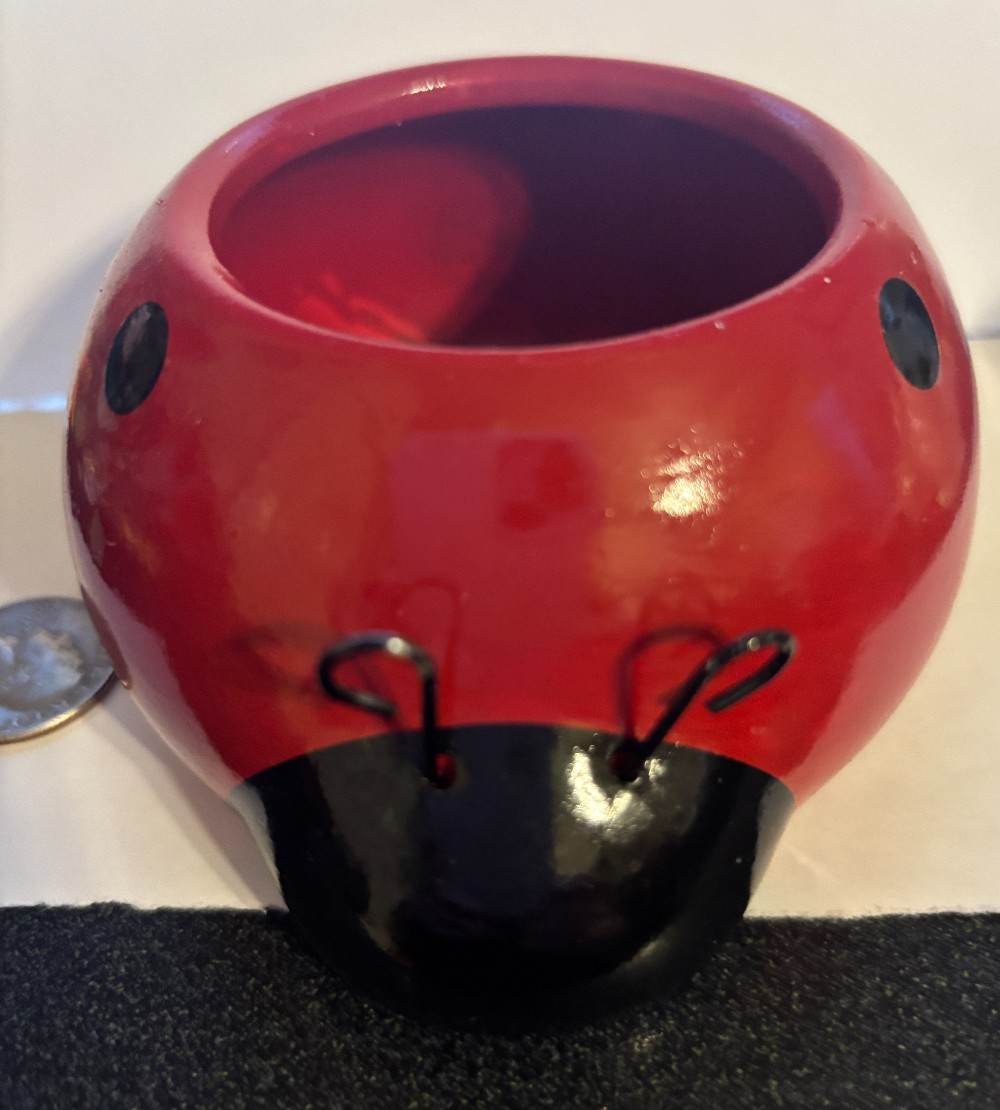 Love Bugs Lady Bug from Rocket Farms red hearts planter flower pot candle holder.2.25"T x 4.5"W