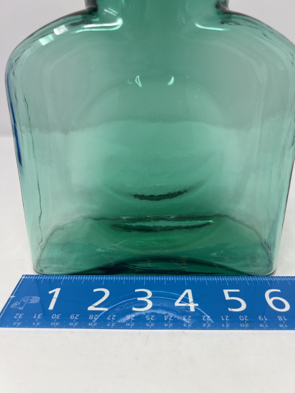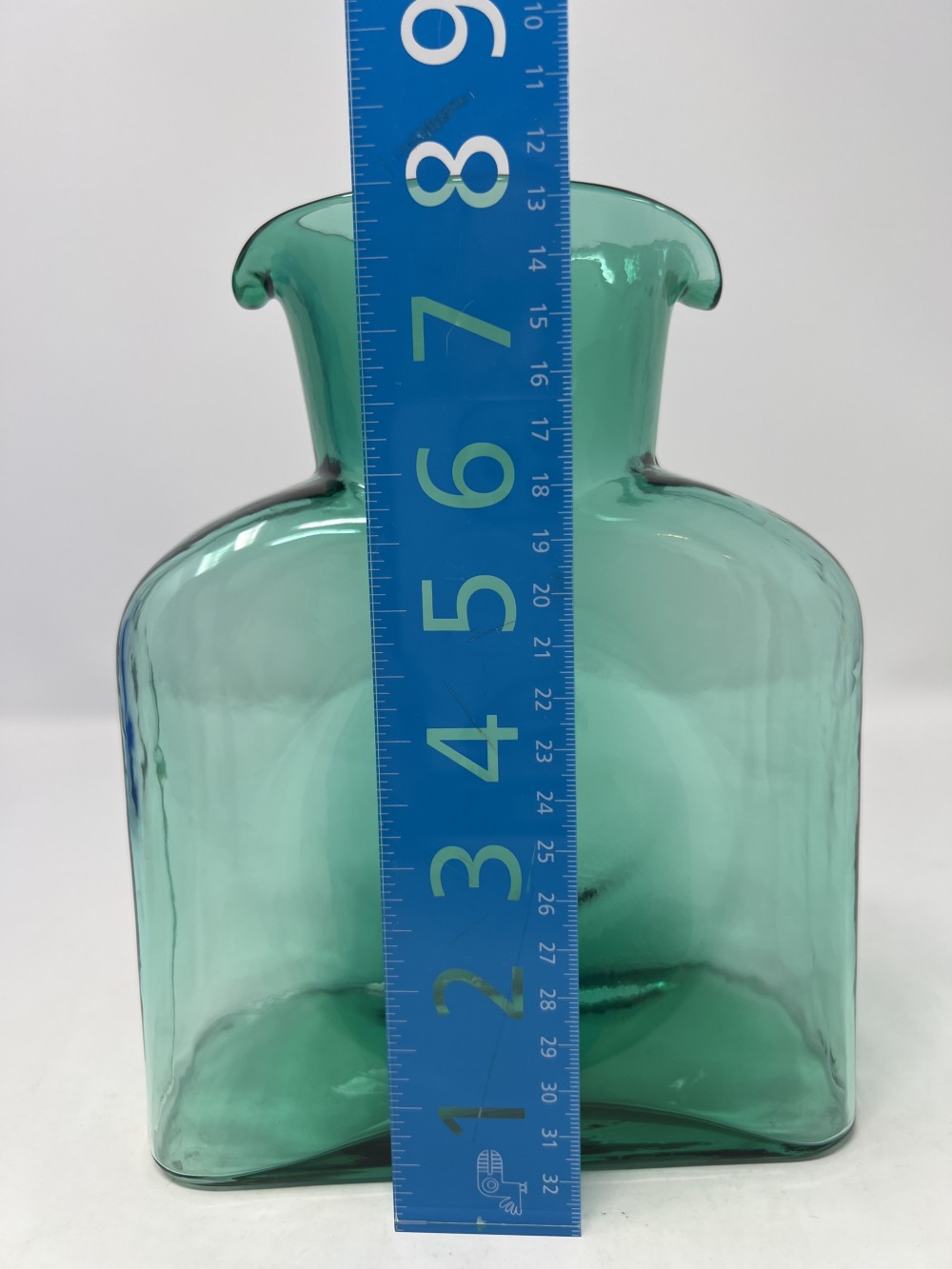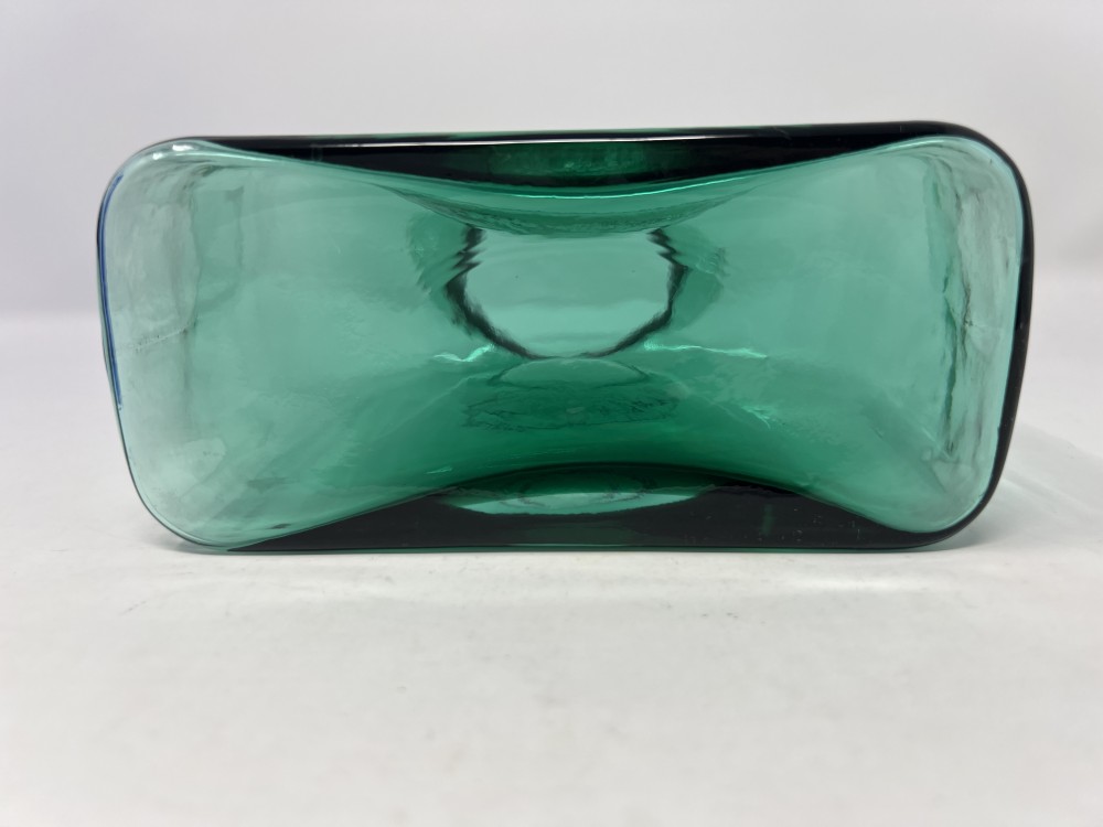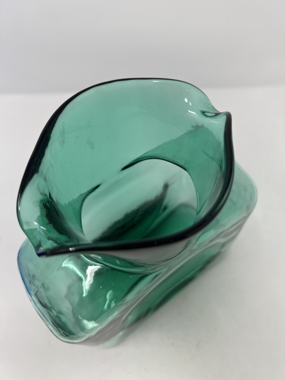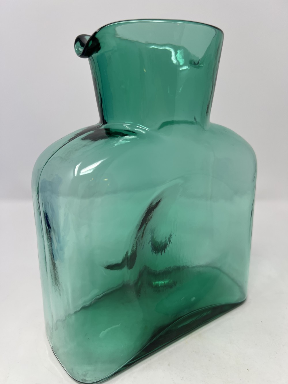 Vintage MCM Blenko Emerald Green Hand Blown Glass Double Spout Water Pitcher Carafe approx 8"