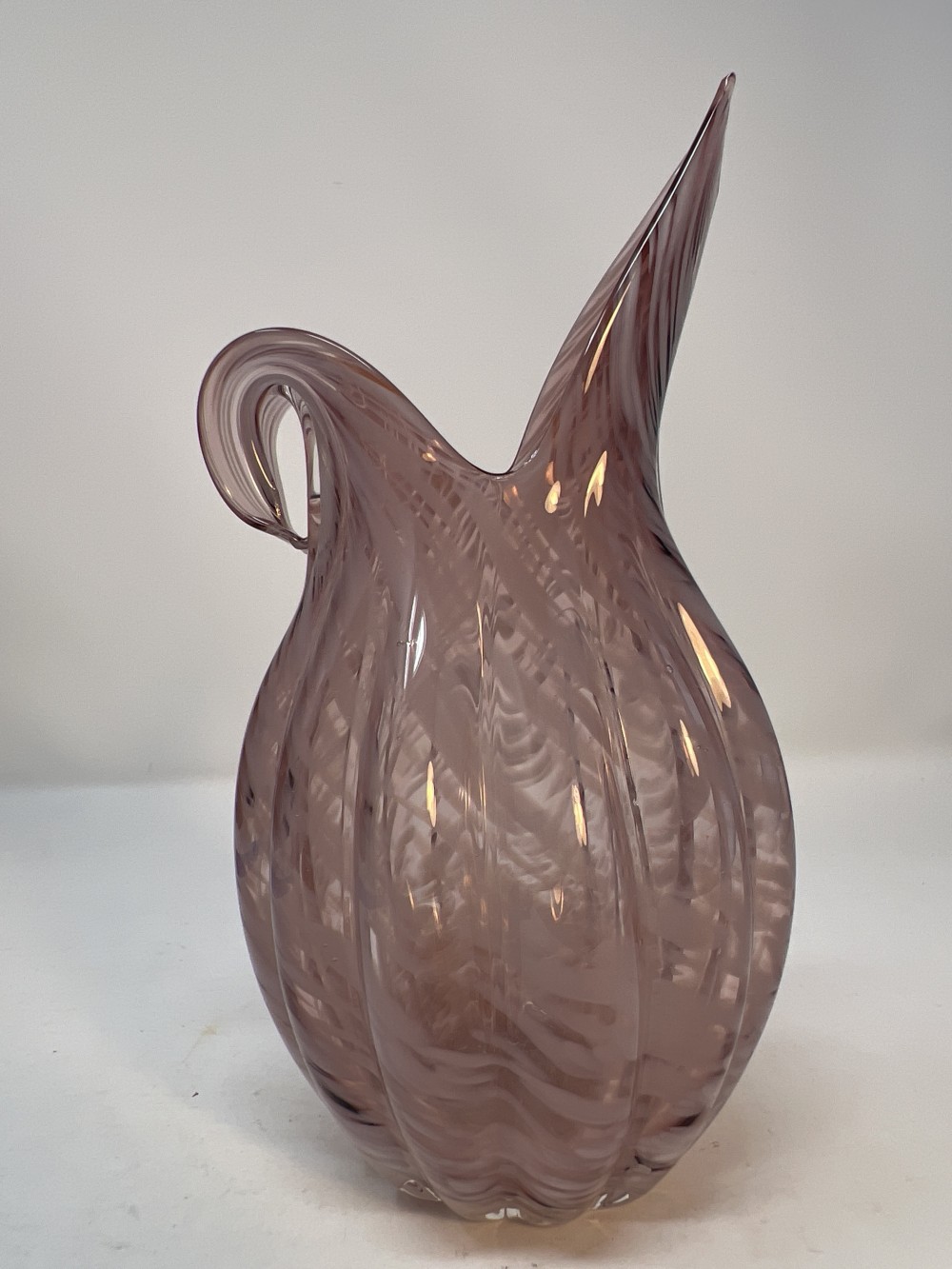 Vintage Lefton Lavender White Swirl Hand Blown Vase; approx 6.5”
