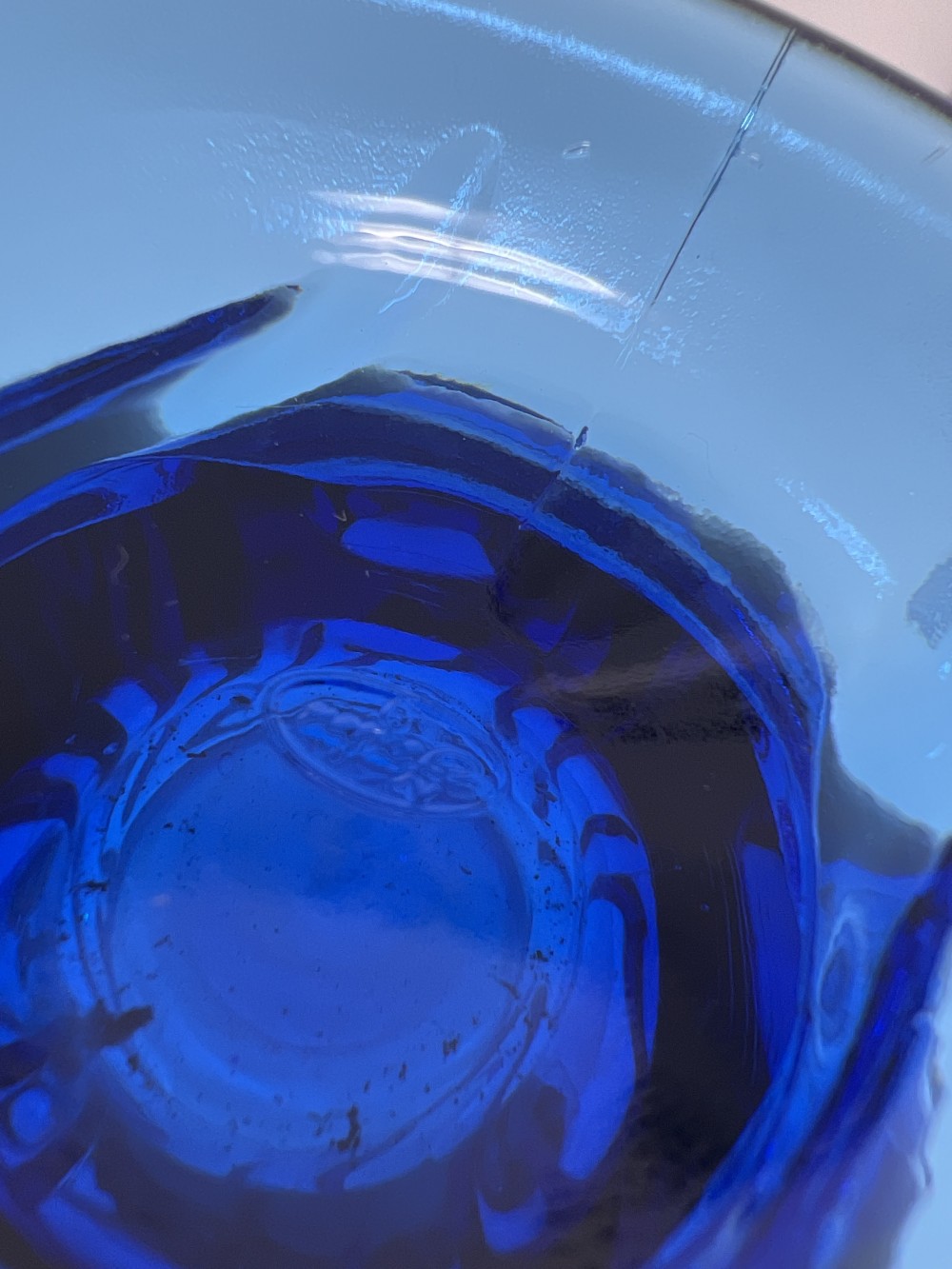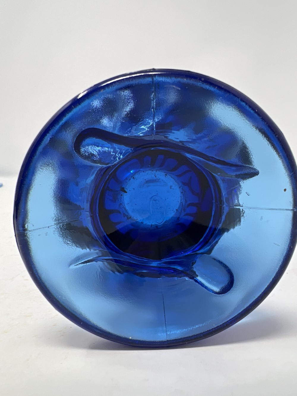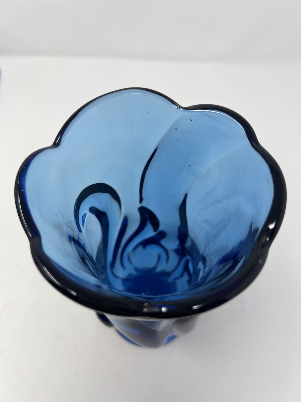 Vintage Fenton Cobalt Blue Embossed Glass Vase; approx 8” x 4”