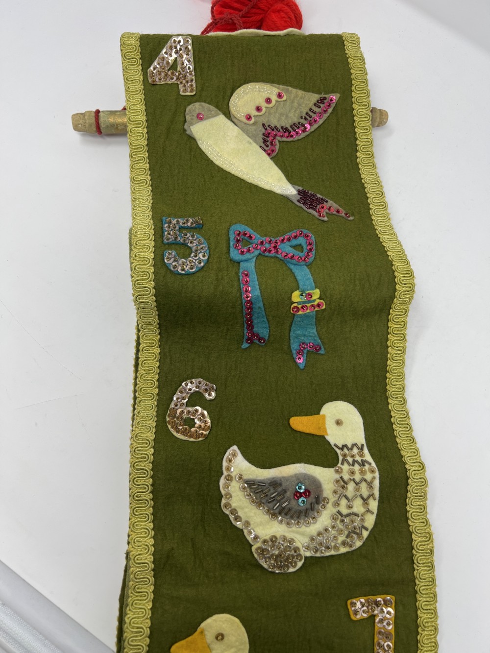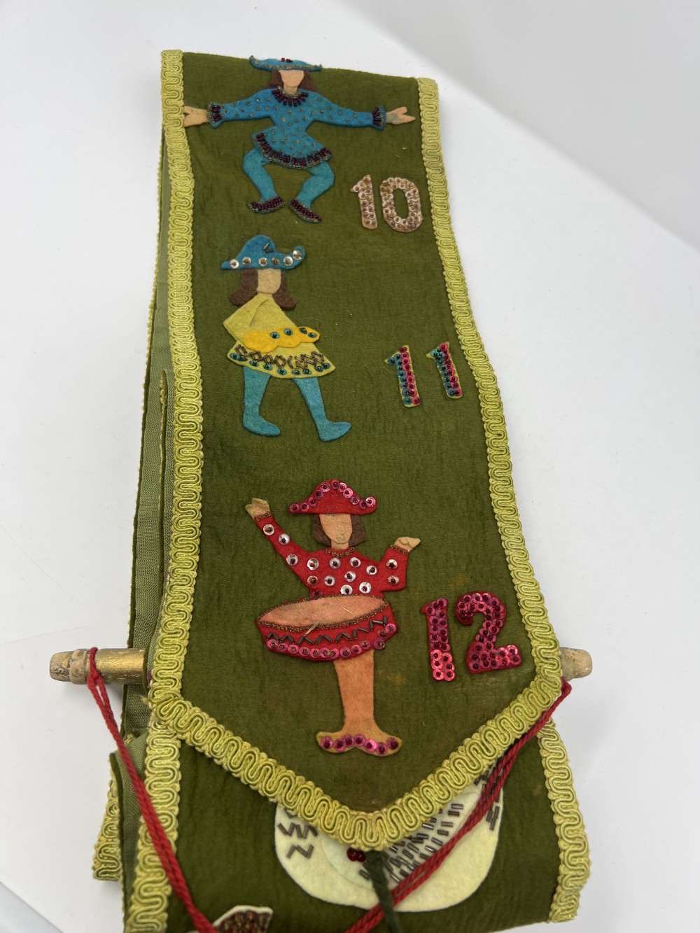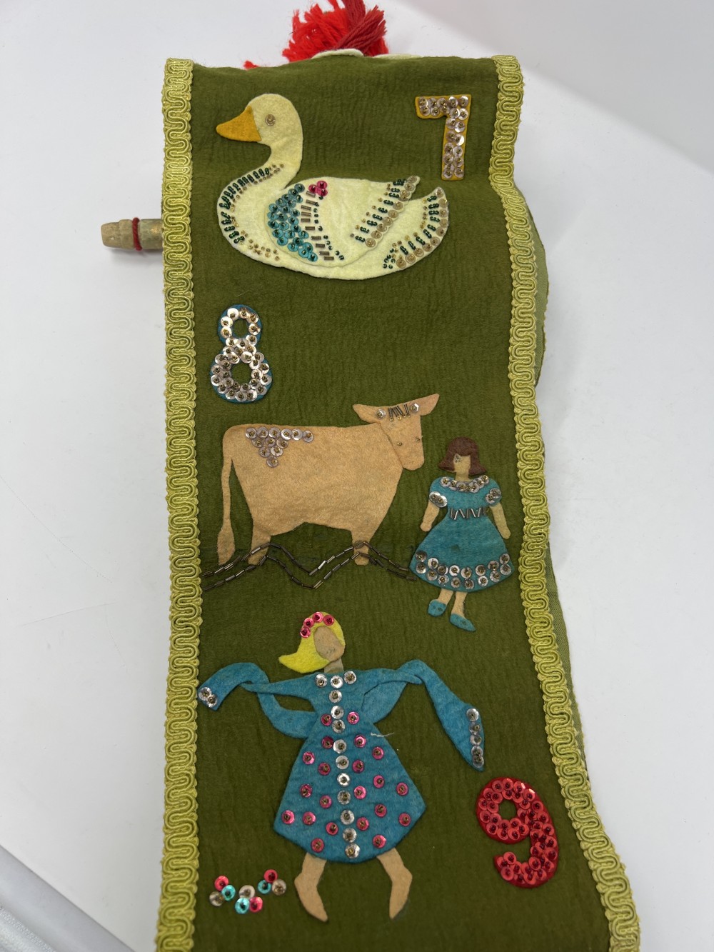 12 Days of Christmas Felt Banner-68" Long-Jeweled Wallhanging w/Sequins Handmade